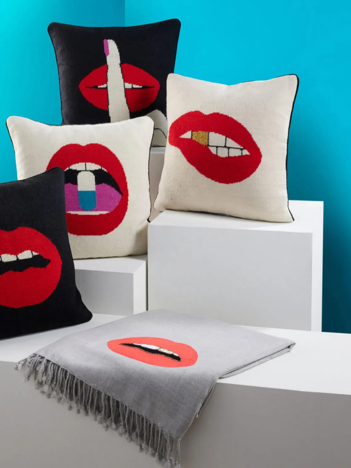 Jonathan Adler Funda de cojín de lana Lips Bitten