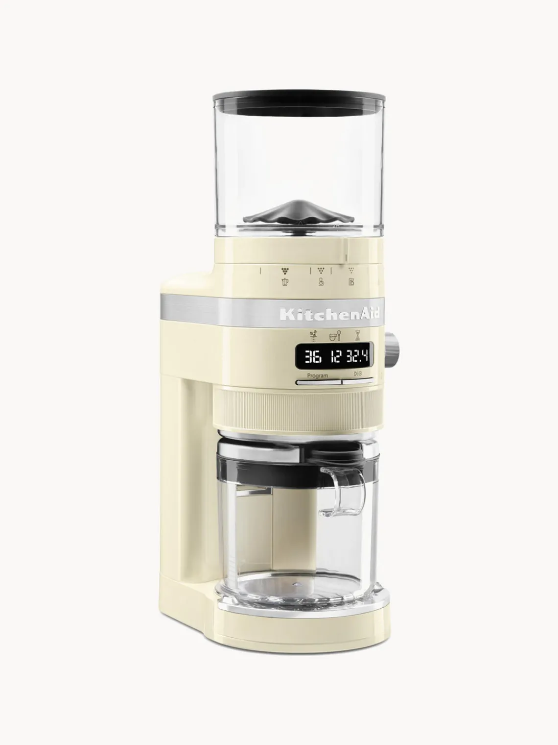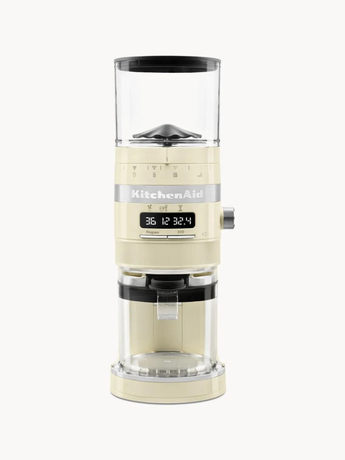 El elegante y compacto molinillo de café es un complemento ideal para la máquina de café espresso (disponible por separado). No solo puedes combinarlo con el color, sino que también puedes moler el café directamente en el filtro.