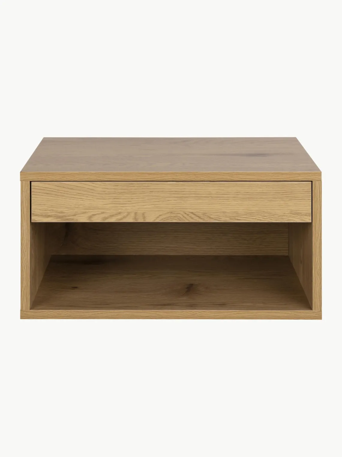 La mesita de noche tiene un cajón y un compartimento.