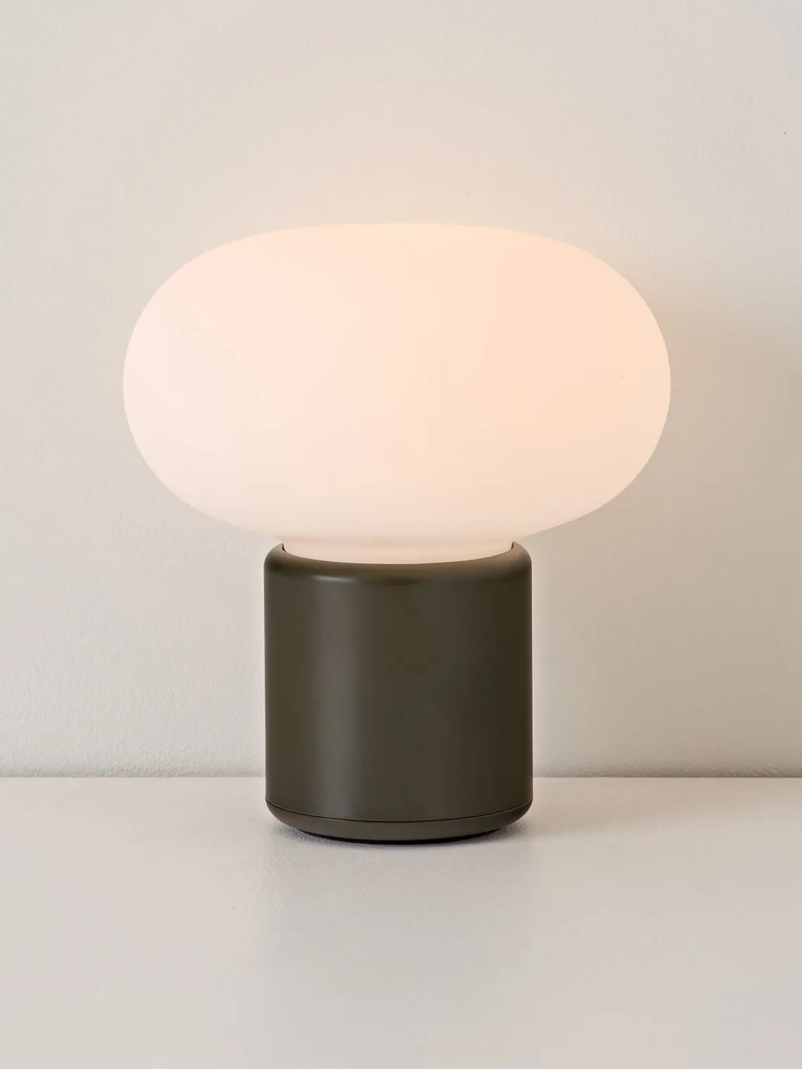 La luz se enciende sin esfuerzo girando la parte superior de la lámpara, suavemente difuminada por la pantalla blanca. La luminosidad puede regularse en tres niveles con un ligero toque en la parte inferior.