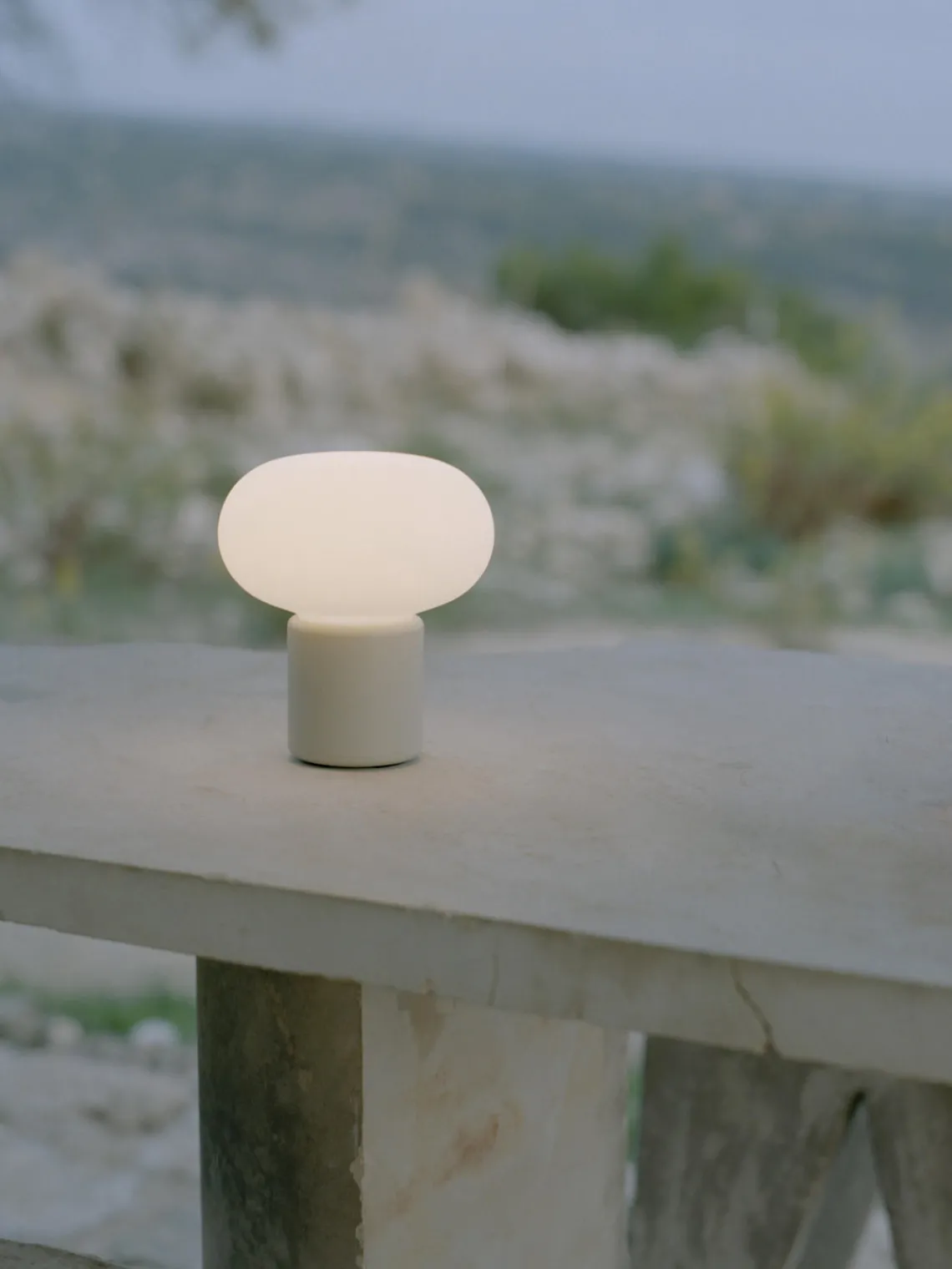 La luz se enciende sin esfuerzo girando la parte superior de la lámpara, suavemente difuminada por la pantalla blanca. La luminosidad puede regularse en tres niveles con un ligero toque en la parte inferior.
