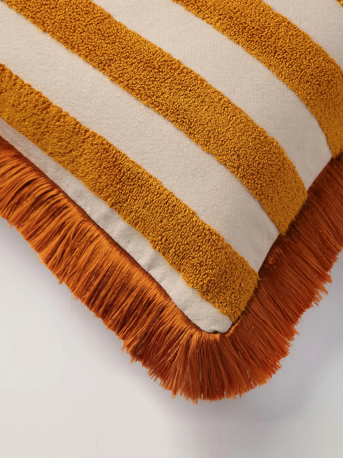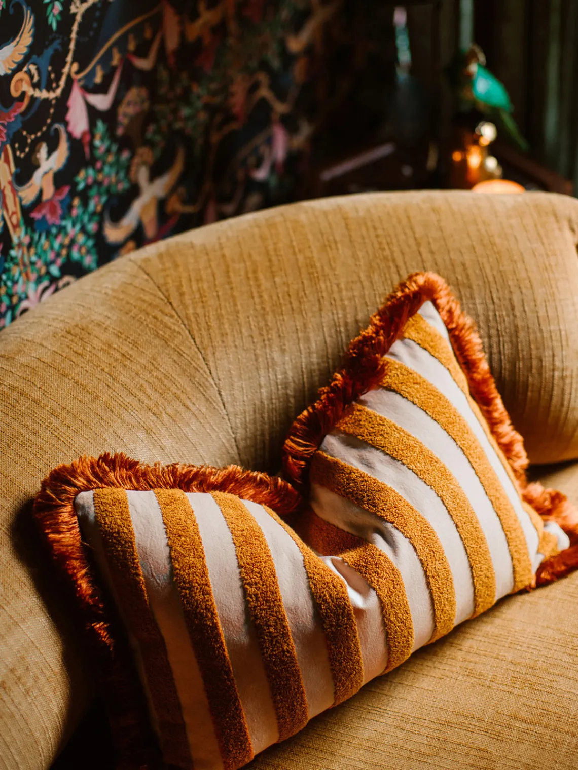 Saluda al cojín JACKIE. Una pieza vibrante que refleja la energía animada de La Habana. Las amplias rayas y los colores claros de JACKIE recuerdan a los veranos de los años 70, cuando las playas estaban llenas de colores felices de las sombrillas y las camas de playa. Mejora tu experiencia de descanso en casa con este cojín. Diseñados para ofrecer un confort lujoso, estos cojines combinan a la perfección estilo y comodidad. Tanto si te relajas en el salón como en el dormitorio, aportan un toque de sofisticación a cualquier espacio interior. La funda de este cojín está hecha de tejido personalizado para ofrecer un tacto suave y lujoso.