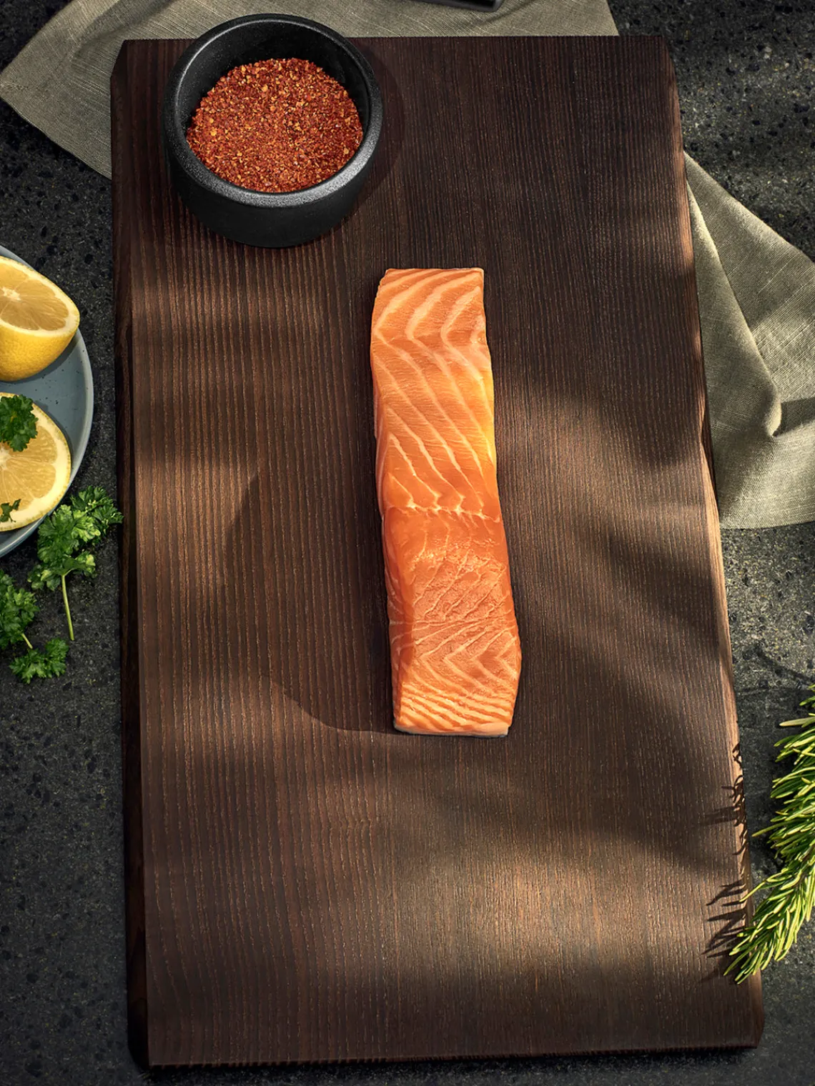 La serie Rå también incluye un cuenco para especias, un tarro para sal grande, un molino y una tabla de cortar.