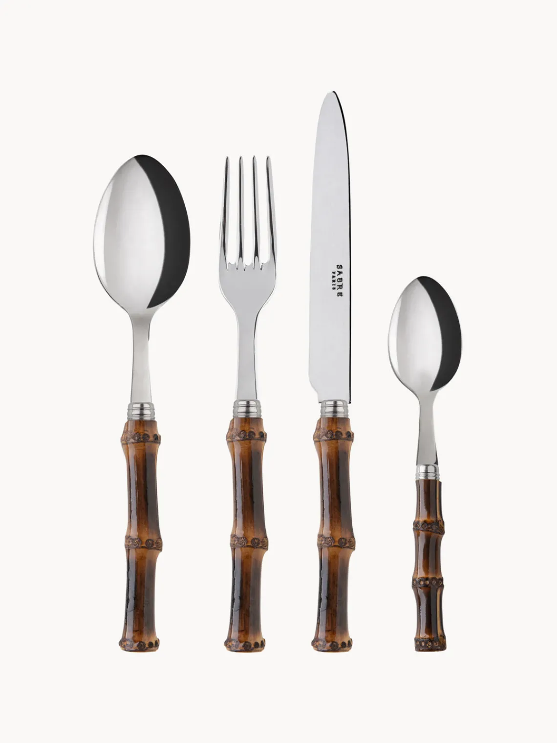 Con su mango de bambú auténtico y su diseño sofisticado, la colección Sabre PANDA aporta un toque único y atemporal a cualquier mesa. Perfecta tanto para ambientes minimalistas como clásicos, añade calidez, carácter y un toque exótico. Este set se entrega en una caja de cartón con la marca Sabre.