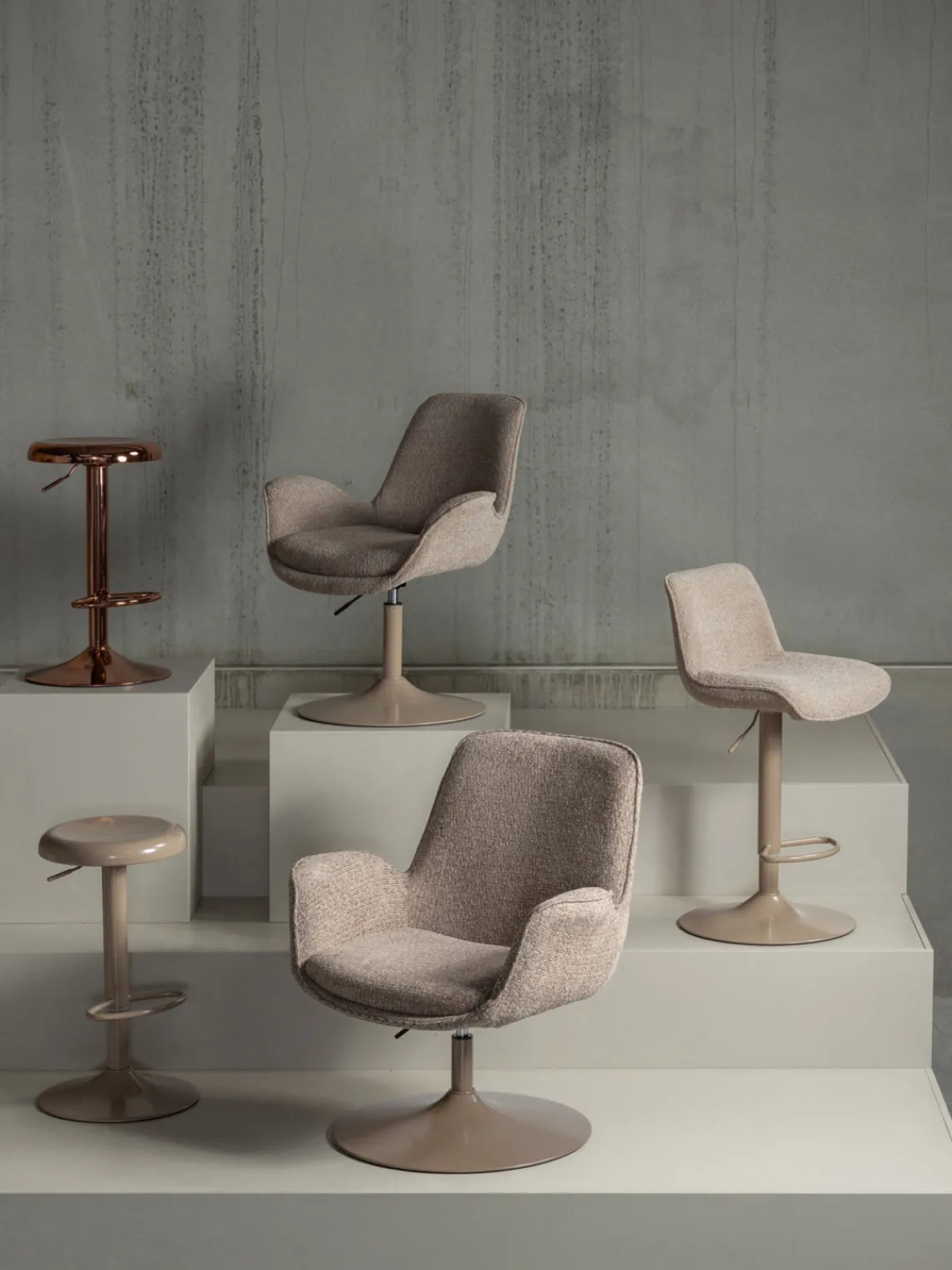 Diseñado con un asiento de altura ajustable, este versátil taburete es perfecto tanto para bares como para mostradores. Cuenta con un mecanismo giratorio de 360°.