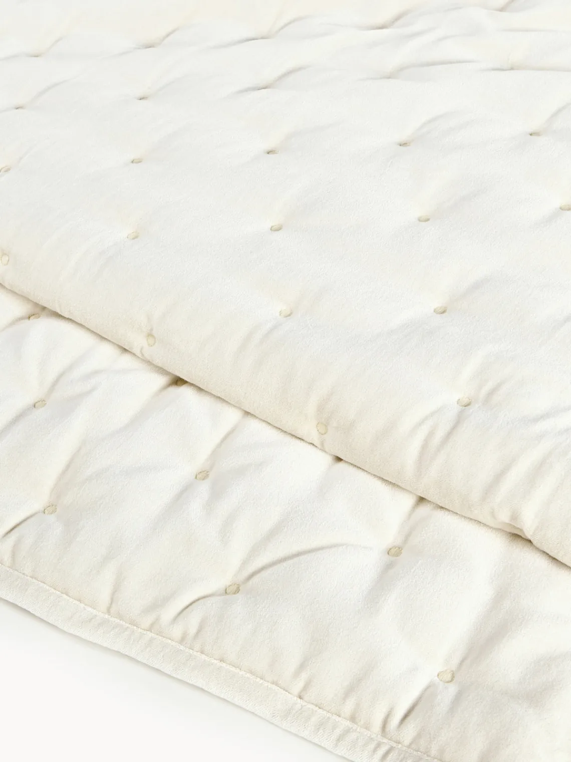 Las colchas nunca deben comprarse demasiado pequeñas. Deben ser al menos iguales a la longitud y el ancho de la cama más unos 20 cm pora cada lado. Como resultado, cubren toda la cama y alcanzan el borde del colchón.