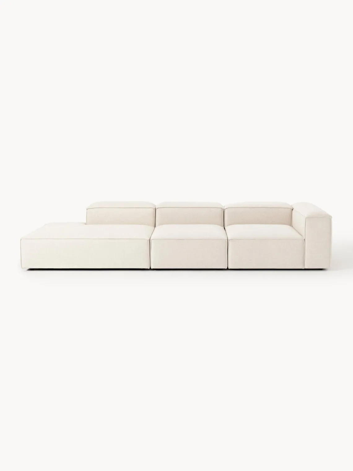 Los tres módulos se pueden combinar a tu gusto para crear tu sofá. Se entrega en tres partes, que se pueden juntar individualmente mediante enganches en la parte inferior de los módulos