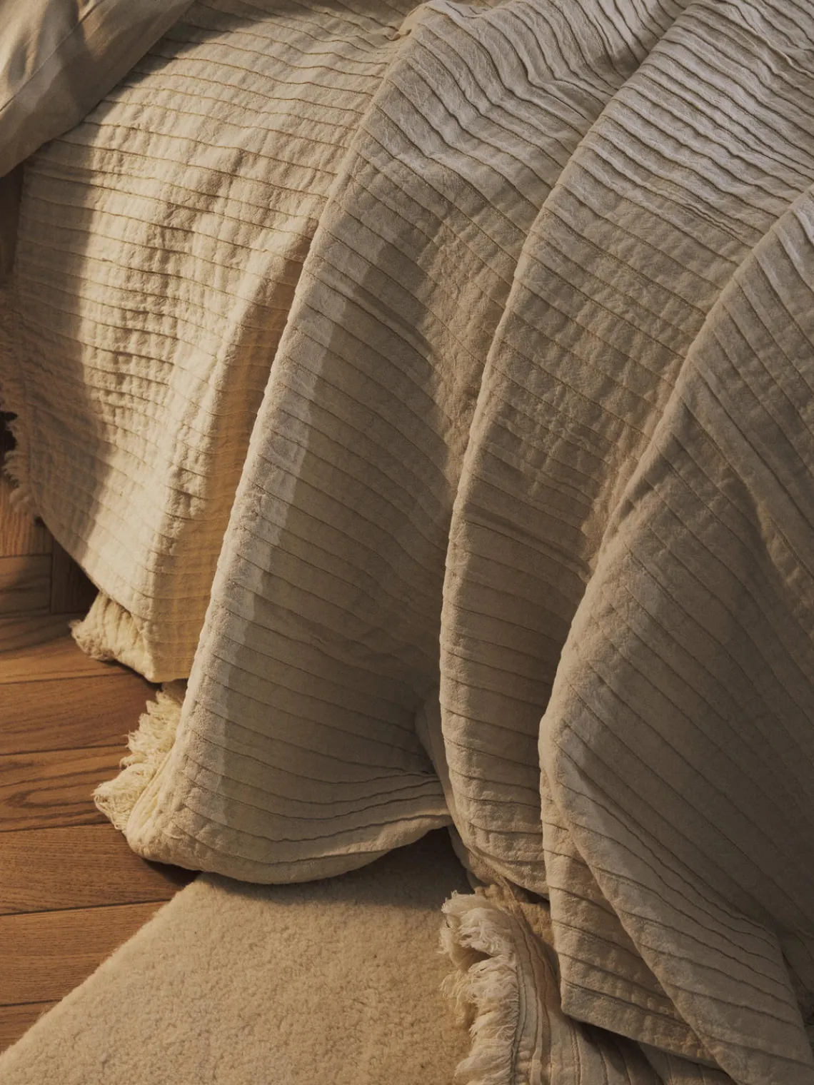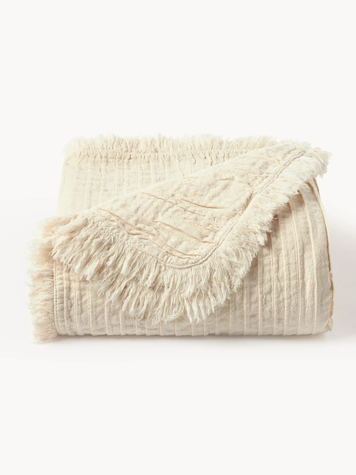 Westwing Collection Manta de algodón con pliegues y flecos Artemis^ Mantas