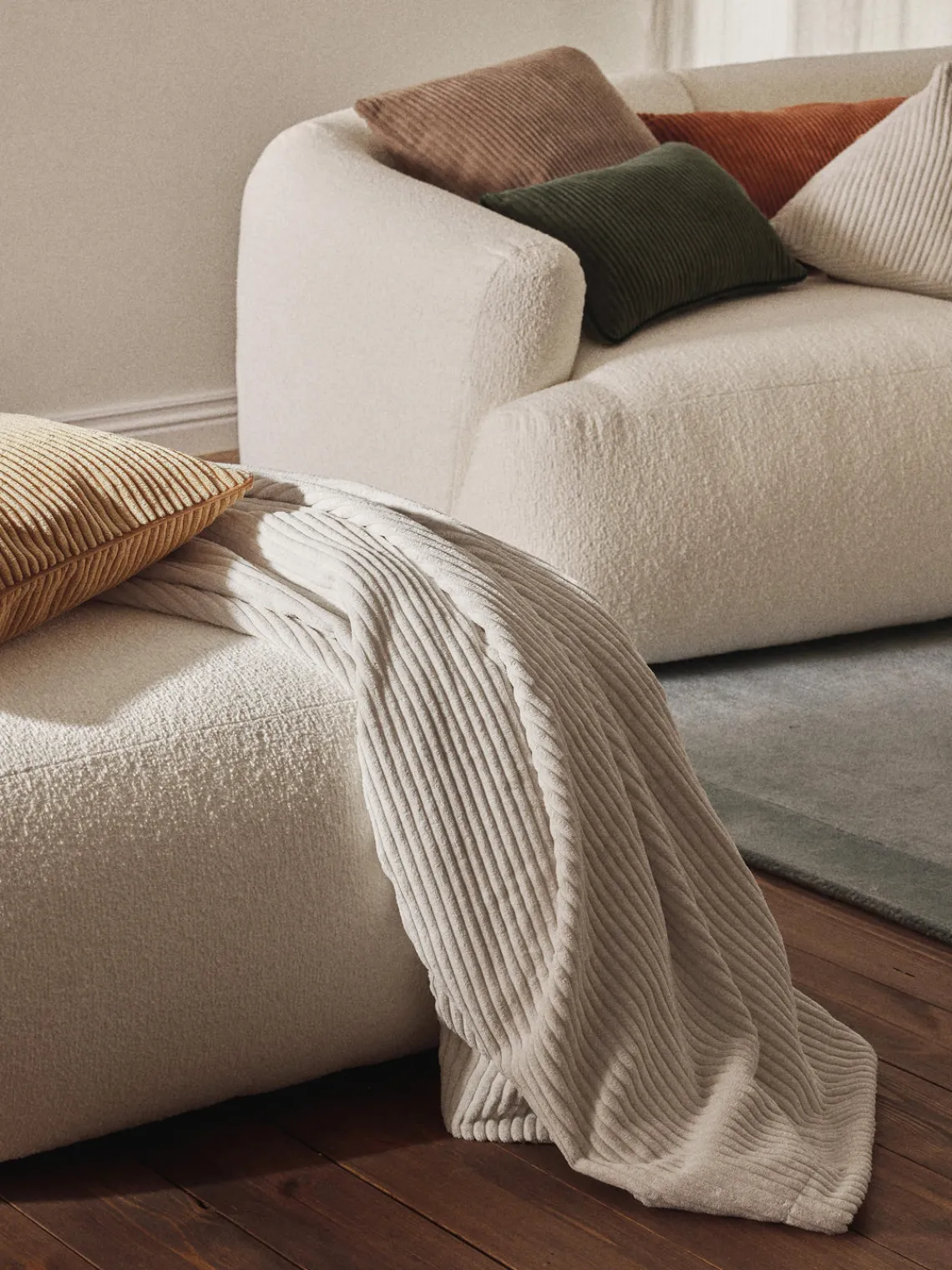 Nuestra manta KYLEN es la combinación perfecta de diseño y comodidad. Gracias a su composición de pana y peluche, no sólo es especialmente suave, sino que además te mantiene muy abrigado. KYLEN es el centro de atención perfecto para el salón o el dormitorio y también aporta un cierto factor de comodidad a tu hogar.