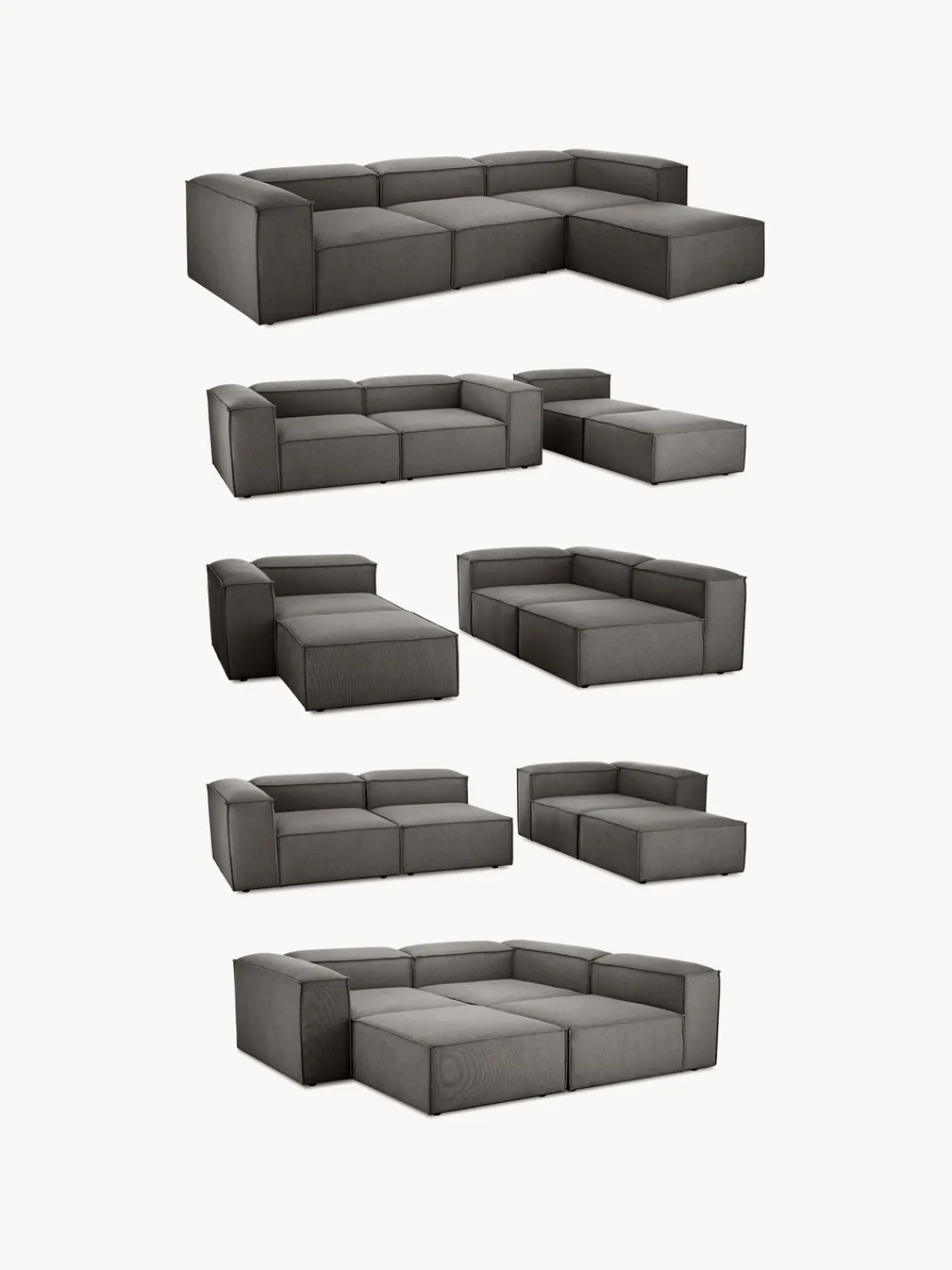 También puedes descubrir otros productos a juego en nuestra gama que se adaptan perfectamente a LENNON: la consola LANA no solo ofrece espacio de almacenamiento adicional, sino que también es un elemento decorativo que se adapta exactamente a las dimensiones de LENNON. El taburete LENNON con bandeja de madera se puede utilizar de forma flexible como mesa de centro o como elemento intermedio en el sofá, para conseguir un aspecto elegante y espacio de almacenamiento práctico. No te olvides del complemento perfecto: cojines de sofá en todos los tejidos y colores de LENNON para un look perfecto, ya sea uniforme o en un estilo mix & match.