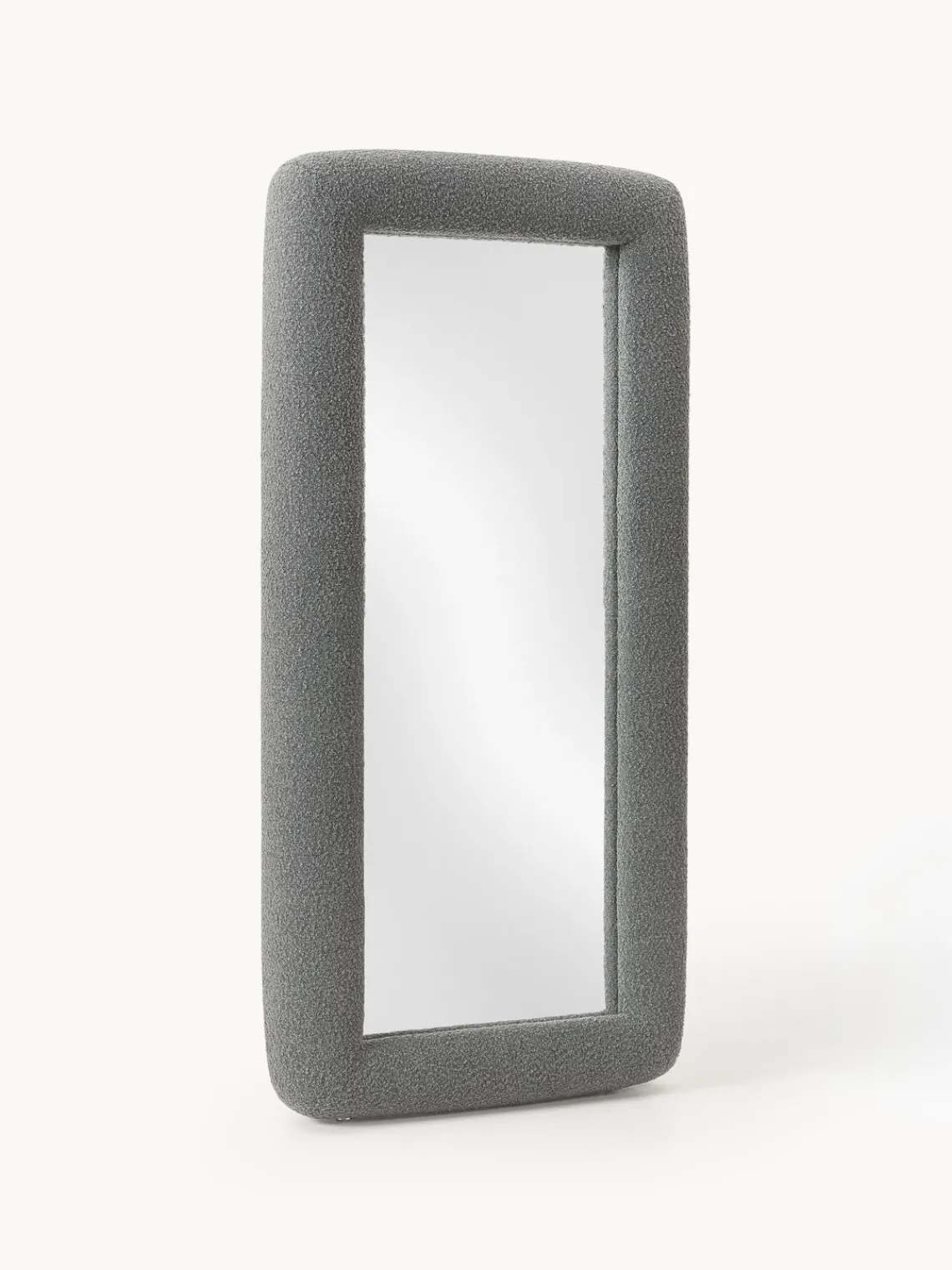 Con un giro escultórico en el reflejo cotidiano, el espejo GLACE lleva el lenguaje visual característico de los estudios Crosby a una forma inesperada y voluminosa. Enmarcado en bouclé táctil con un atrevido patrón de tablero de ajedrez gris, esta pieza de cuerpo entero y de pie convierte un objeto funcional en una declaración de diseño. El borde grueso acolchado añade suavidad y dimensión, jugando con la escala de una manera que se siente divertida pero sofisticada. El motivo de tablero de ajedrez, inspirado en una cuadrícula de Photoshop, un lienzo digital en blanco donde comienza la creatividad, enmarca no sólo su reflejo, sino un momento de intención artística. GLACE no es sólo un espejo; es una invitación a verse a sí mismo a través del prisma del diseño.