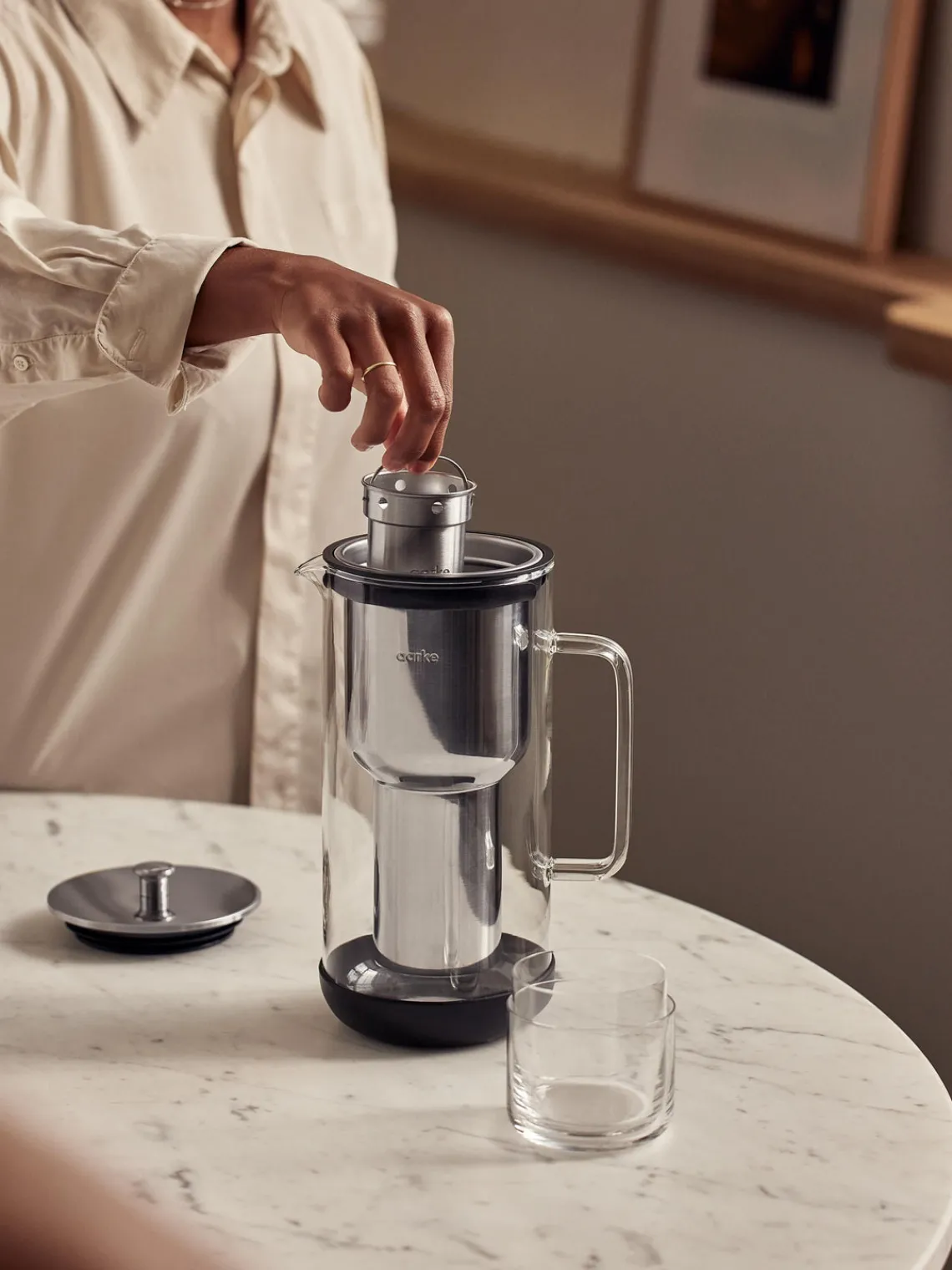 Tiene uno cartucho de filtro de acero inoxidable recargable y viene con un filtro Pure.
