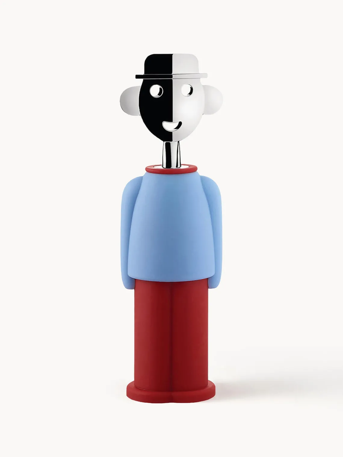 El sacacorchos de ALESSANDRO M. parece un autorretrato del diseñador Alessandro Mendini y regresa en la colección Color Tales con una serie de trajes deslumbrantes, para cualquiera que quiera descorchar un buen vino con un instrumento que combine función y emoción.