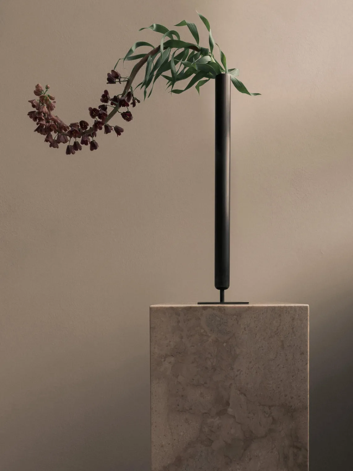 El jarrón STANCE se inspira en los soportes tradicionales que sirven de soporte para ramas o flores de tallo largo. El jarrón de latón bronceado adquiere una hermosa pátina con el tiempo y su diseño sencillo se adapta a cualquier ambiente.