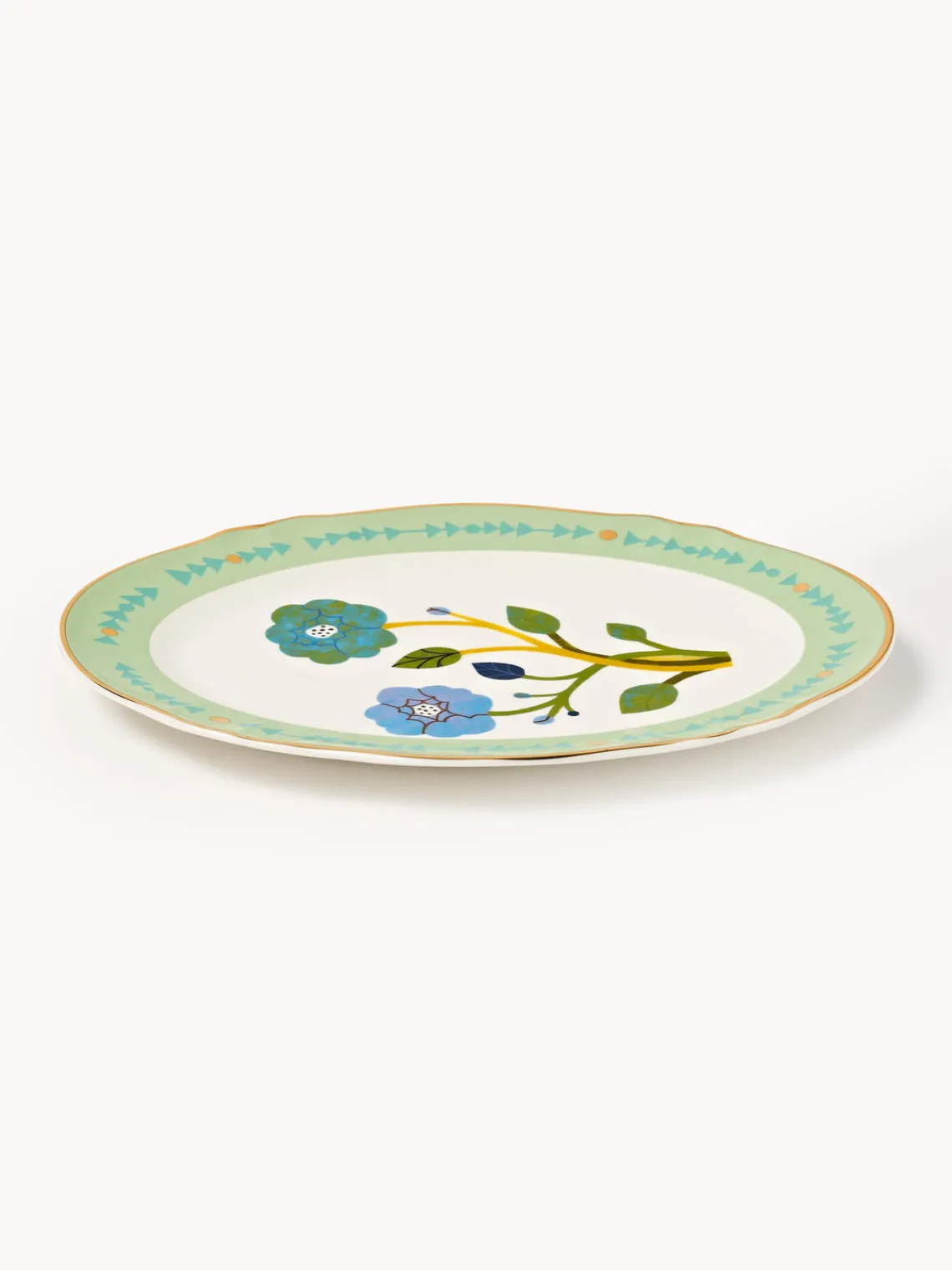 Colección de porcelana con estampado transfer y detalles en dorado, diseñada por Monika Forsberg.