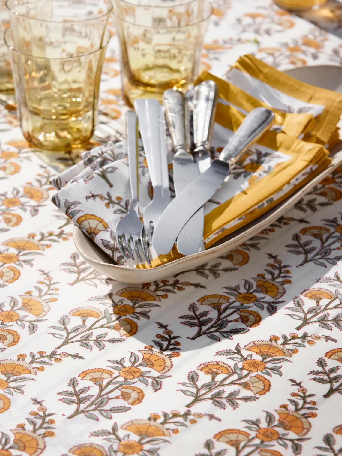 El mantel MELON está hecho de 100% algodón y presenta una técnica de estampado tradicional. Cada pieza se crea a mano mediante un proceso meticuloso y que requiere mucho tiempo, lo que hace que cada mantel sea verdaderamente único.