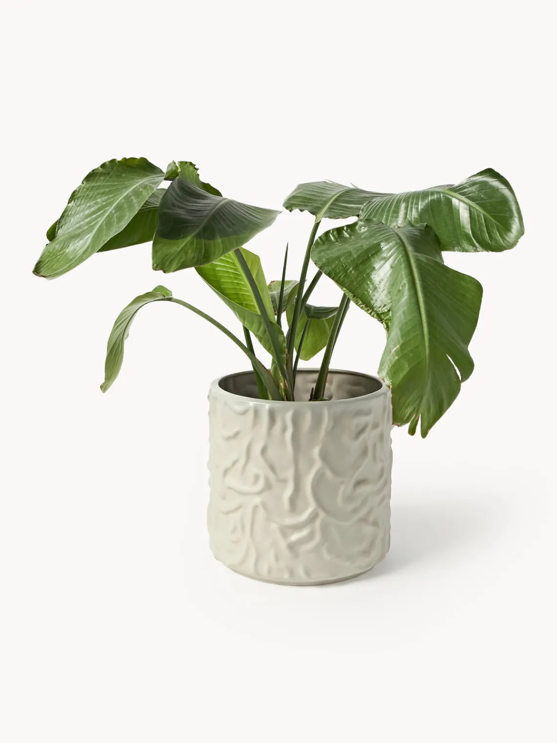 Dado que el macetero no tiene un orificio de drenaje, recomendamos usar una maceta interior para regar uniformemente.