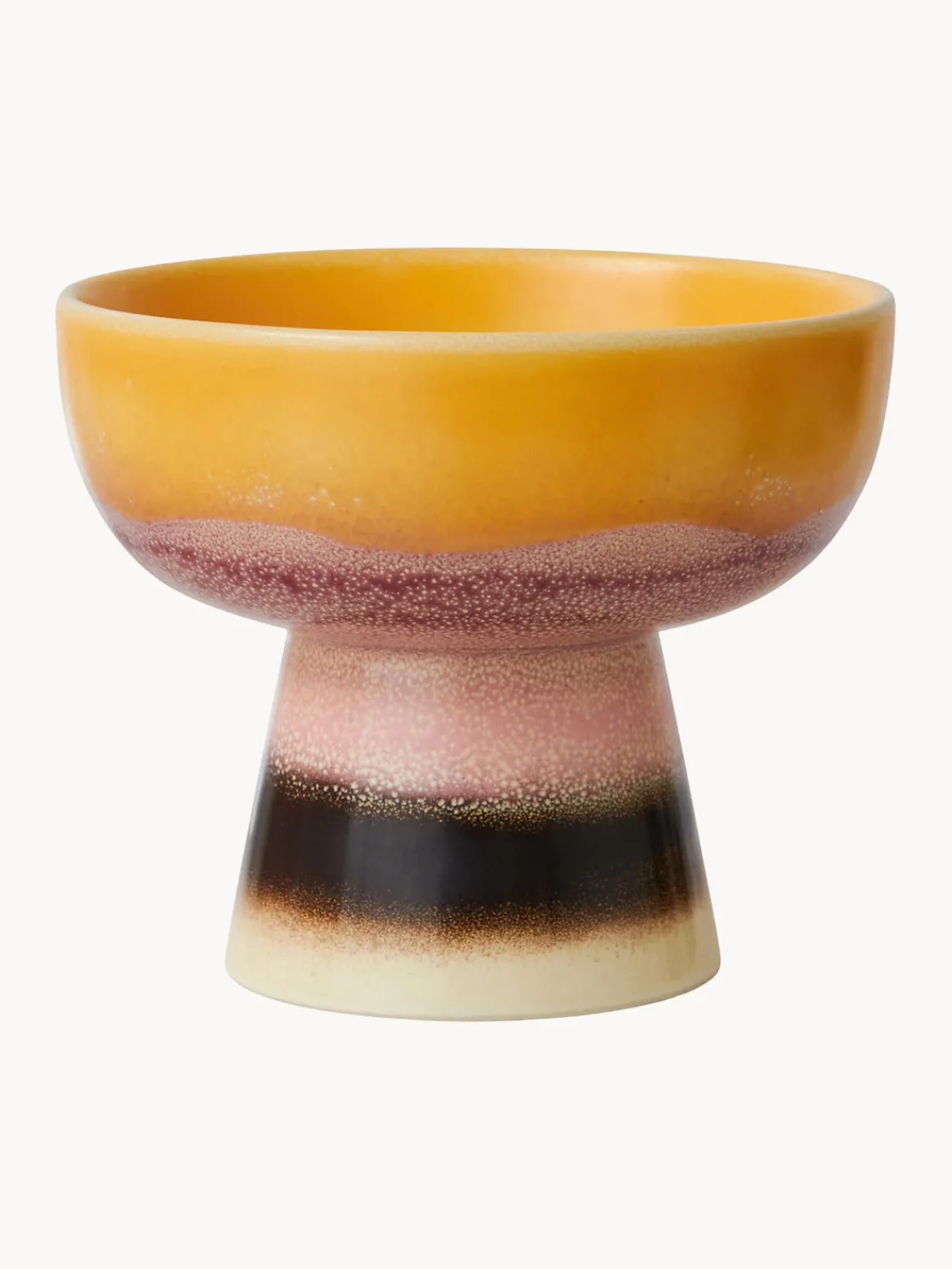 Puede que la colección de los 70’s esté inspirada en los emocionantes años 70, pero esta vez el acabado tiene una base natural y recuerda a las rugosas líneas costeras. La colección combina formas icónicas con adiciones frescas y atraerá a todos aquellos que aprecian la simplicidad en estado puro. Aporta un aspecto fresco y atrevido a tu mesa con este cuenco con base, una de las últimas incorporaciones a la colección 70’S. Gracias a su robusta base, este cuenco es perfecto para servir tapas, aperitivos o postres.