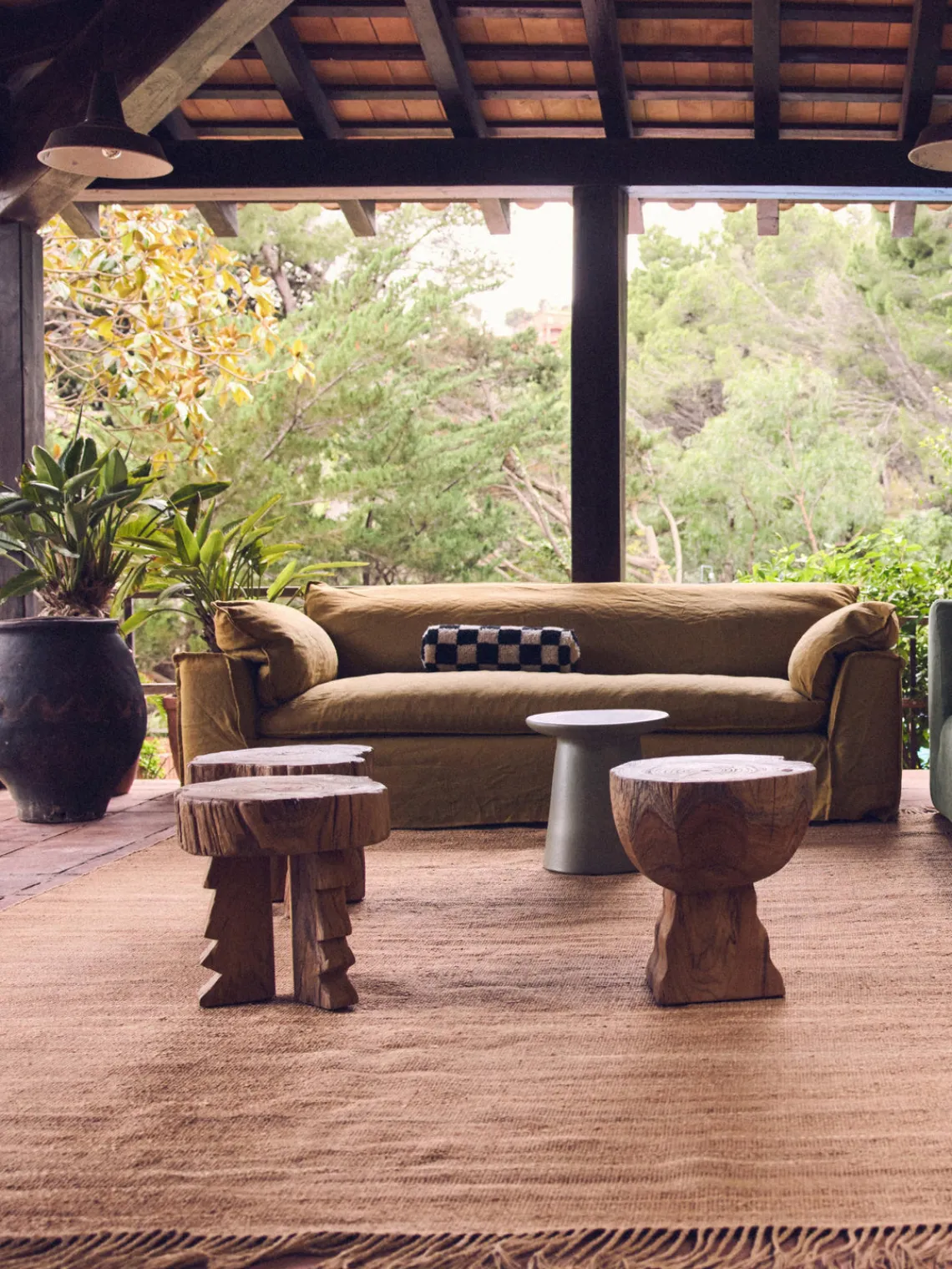 HKLIVING Taburete artesanal de madera de teca Arched^ Pufs Y Otomanos|Pufs Y Otomanos