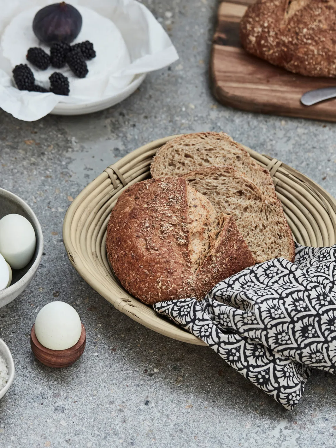 Esta cesta hecha a mano de ratán natural y bambú aporta belleza y funcionalidad a tu cocina. Es perfecta para guardar alimentos secos y también puede utilizarse como cesta de pan decorativa. El color natural y terroso y el tejido uniforme le dan un aspecto rústico y orgánico que se integra fácilmente en diversos estilos de interior. Utilízala para complementar con estilo tu mesa de comedor o encimera de cocina.