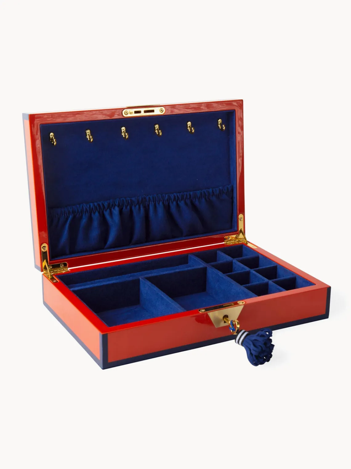 El joyero EDEN es una auténtica joya para tus joyas más preciadas. Con su elegante diseño y su práctica distribución interior, es el lugar perfecto para guardar tus piezas favoritas. La sofisticada borla de la cerradura le da un toque especial.