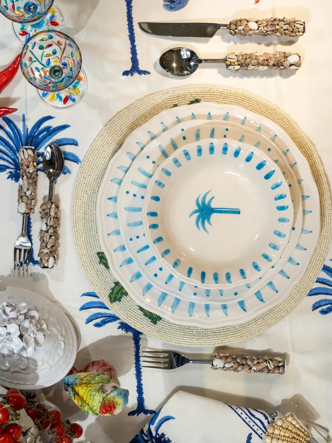 Les Ottomans Plato postre pintado a mano The Palms