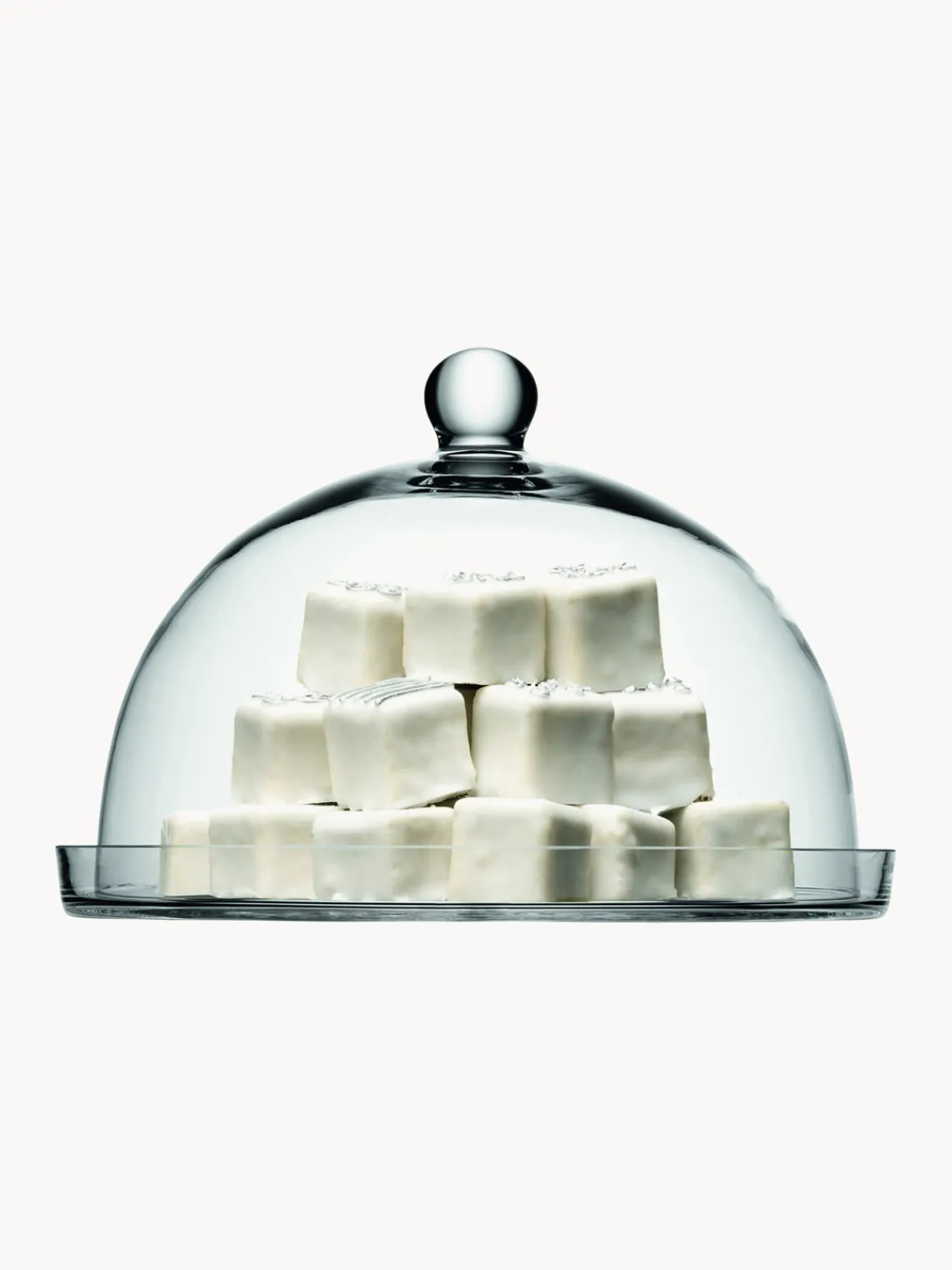 VIENNA es una versátil colección de campanas y soportes para pasteles de vidrio artesanal con formas atemporales que aportan un toque de elegancia clásica a cualquier presentación.