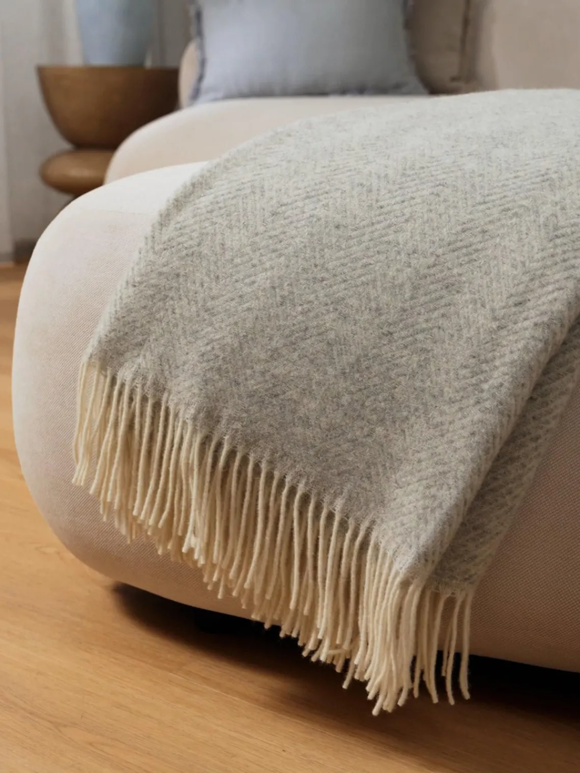Manta de lana con estampado de espiga y flecos Tirol-Mona^ Mantas