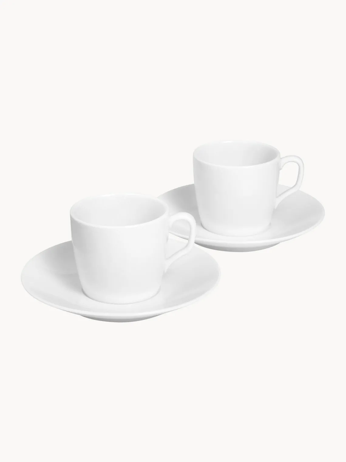 Este set de vajilla de 4 piezas hecho a mano consta de dos tazas de café con platito.