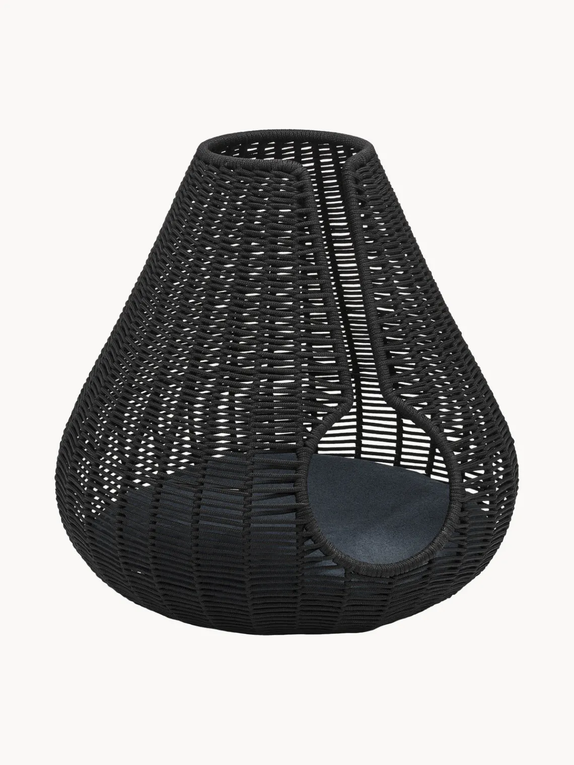 La forma de lágrima curvada de la cueva para gatos hecha a mano proporciona a tu gato una sensación de seguridad para una siesta relajante. A pesar de su forma protegida, la cueva para gatos PERLA está tejida con una cuerda sólida y resistente a la luz, lo que permite a tu gato disfrutar de una vista de 360° de su entorno. Las trenzas de cuerda están compuestas de hilo especial de alta calidad que mantiene una alta resistencia a la luz UV y a las manchas y las bacterias, lo que la hace adecuada tanto para interiores como para exteriores.