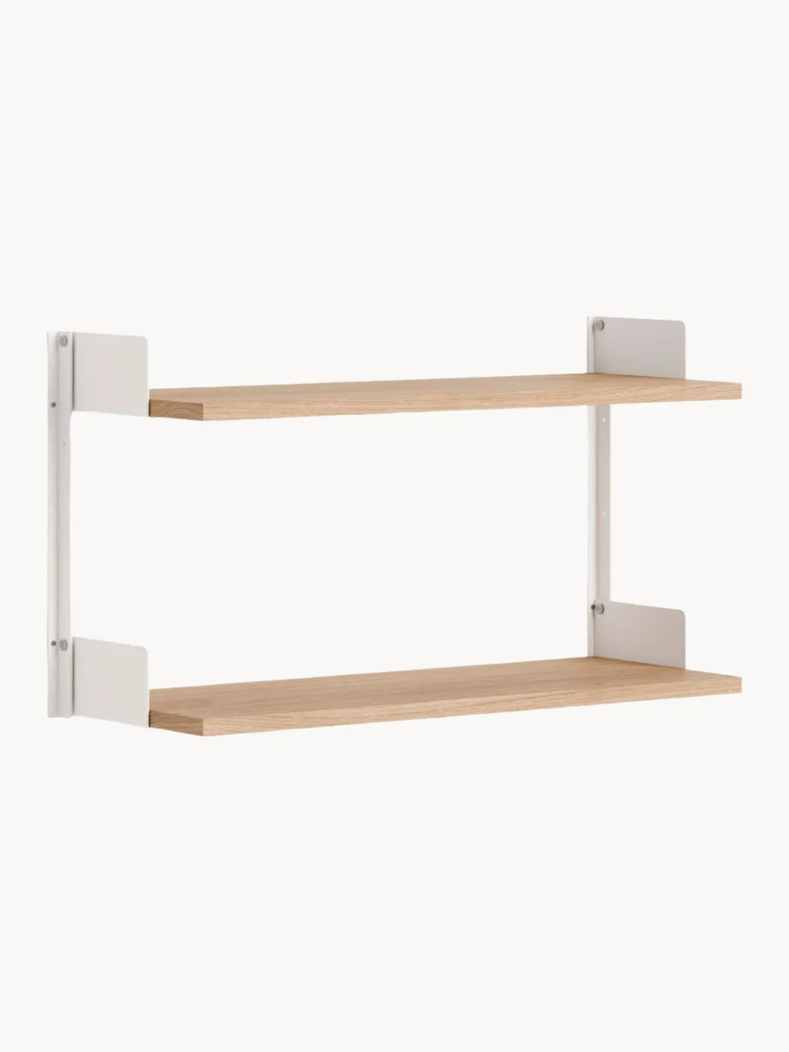 Nada es superfluo, cada detalle está cuidadosamente pensado, desde los distintivos perfiles de los soportes hasta los sujetalibros integrados que mantienen tus objetos firmemente en su lugar. Las estanterías se fijan con tornillos de acero inoxidable ribeteados, lo que añade un toque honesto pero sofisticado al diseño. Un sistema que crece contigo, en tu hogar y en su variedad, para satisfacer una amplia gama de necesidades de almacenamiento.