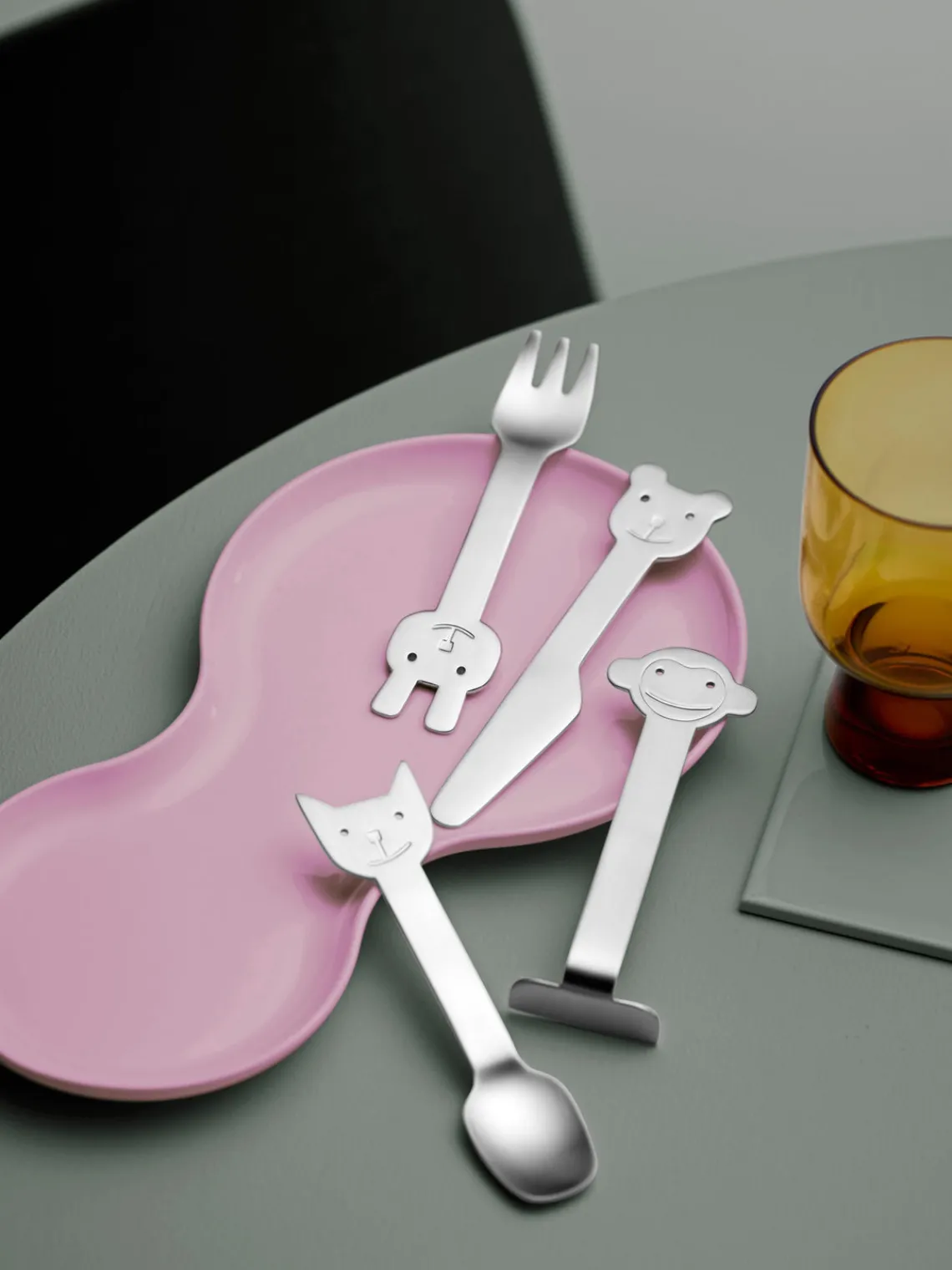 Niños Gense Cubertería infantil cepillada mate Animal Friends, 4 pzs.