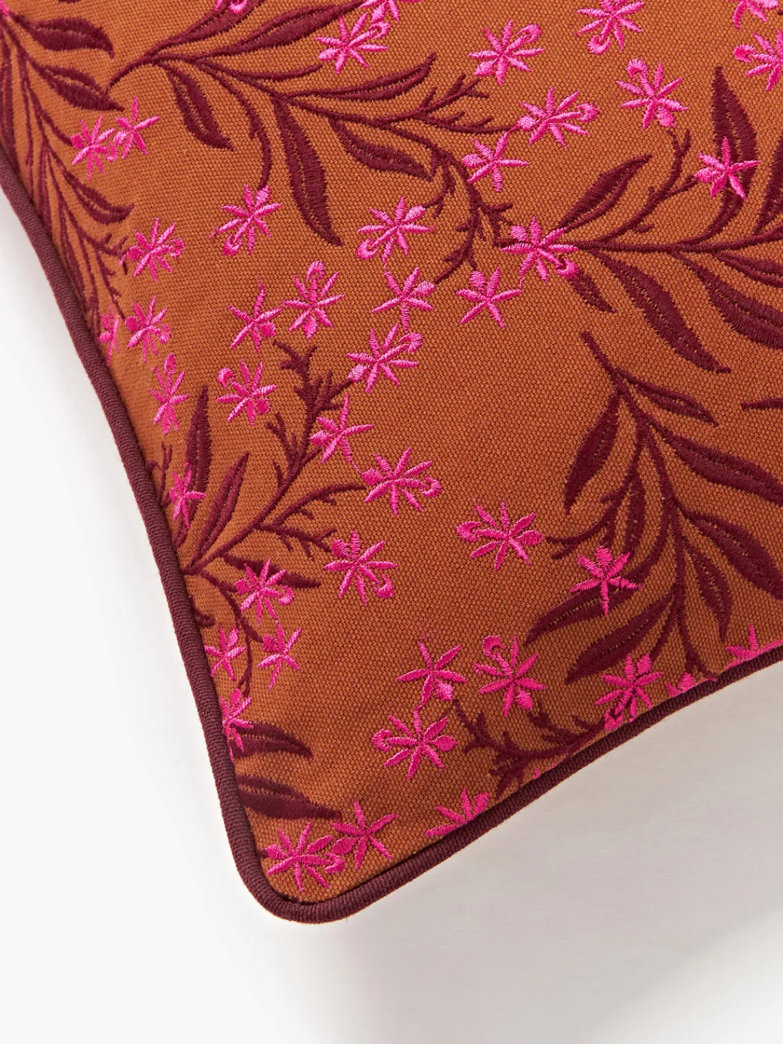 Dale un nuevo soplo de vida a tu interior con este cojín decorativo. El intrincado diseño bordado de AUDREYs irradia los vibrantes colores de exuberantes flores y el juguetón encanto de un paraíso floral. Esta funda de cojín está hecha de lona de 100% algodón. El algodón es un recurso natural y renovable, por lo que es una opción ecológica para la decoración de tu hogar.