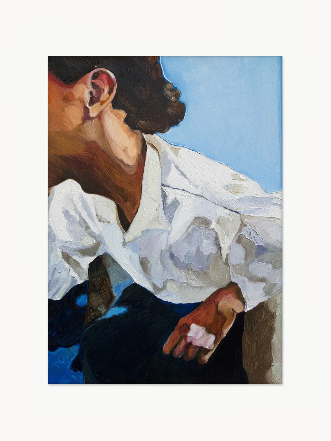 Inspirado en los momentos fugaces de la vida cotidiana, The Man I Met In A Bar, de la artista residente en Copenhague Lolita Pelegrime, transmite una sensación de movimiento y energía en este grabado. Realizada con pintura al óleo sobre lienzo, una única figura en blanco cobra vida gracias a la gruesa aplicación del medio elegido por Pelegrime. La belleza y vitalidad de los momentos cotidianos capturados en el flujo del tiempo se muestra en la composición, demostrando la habilidad del artista para crear profundidad, movimiento y dramatismo a través de cada pincelada.