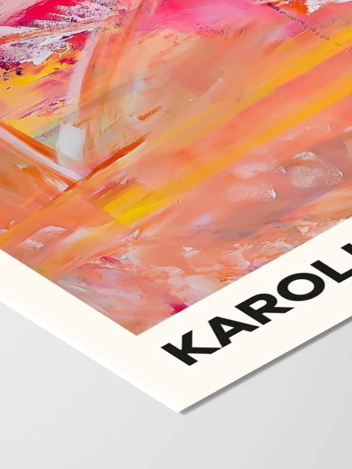 Vibrante obra de arte abstracto de Karoline Dall con pinceladas poderosas y ricas capas de color. Esta pieza aporta energía y calidez a cualquier ambiente moderno.