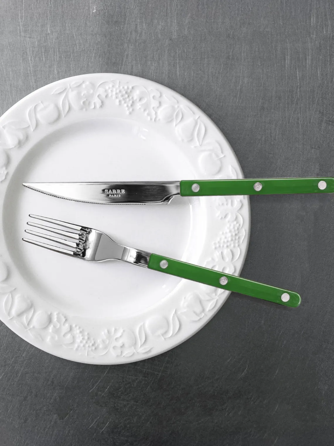 Inspirada en los cafés y bistrós clásicos, esta colección combina un encanto atemporal con un toque moderno. Con remaches visibles y acabados elegantes, desde colores atrevidos hasta asas de estilo de cuerno, está diseñada para destacar. Este set se entrega en una caja de cartón con la marca Sabre.