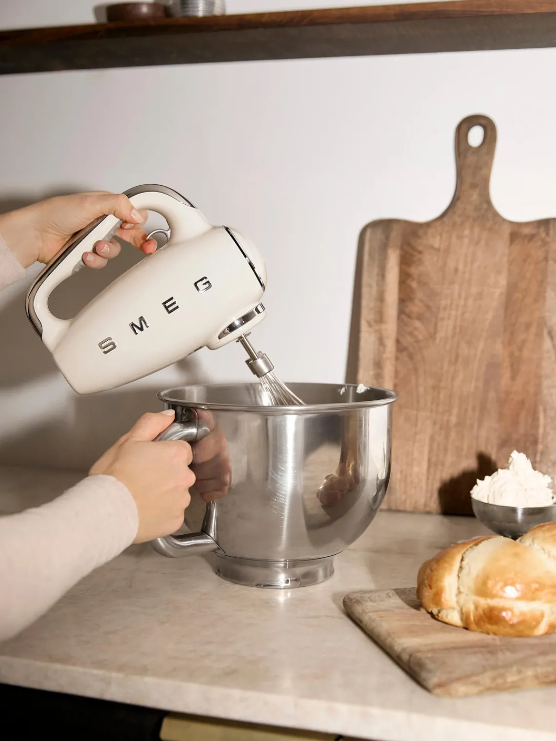 El inconfundible diseño de los electrodomésticos al estilo de los años 50 y una sofisticada tecnología se unen aquí: diseñada por Matteo Bazzicalupo y Raffaella Mangiarotti (Deepdesign), la batidora de mano combina estilo y versatilidad, por lo que es ideal para cualquiera que quiera dar rienda suelta a su imaginación en la cocina.