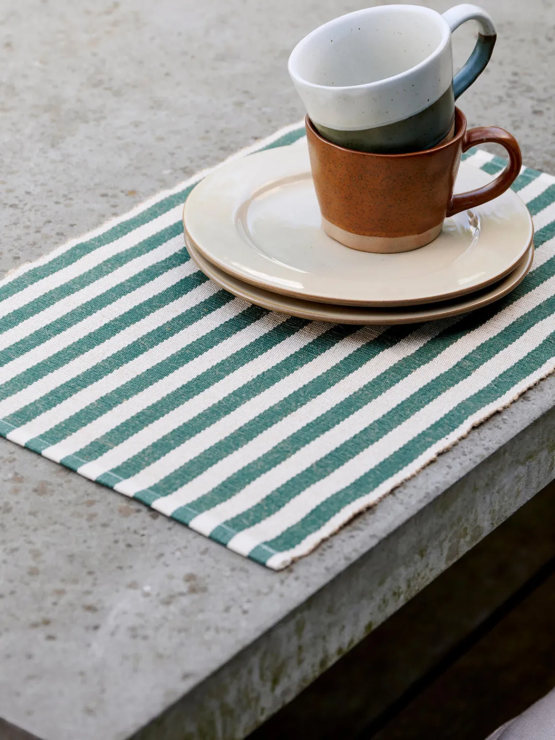 Las clásicas rayas audaces y uniformes crean un fondo perfecto para su uso diario. El mantel individual está hecho de fibras de algodón y yute, lo que le da un aspecto encantador y ligeramente rústico. Disponible en una gran gama de bonitos colores, el mantel individual traerá optimismo a cualquier hogar.