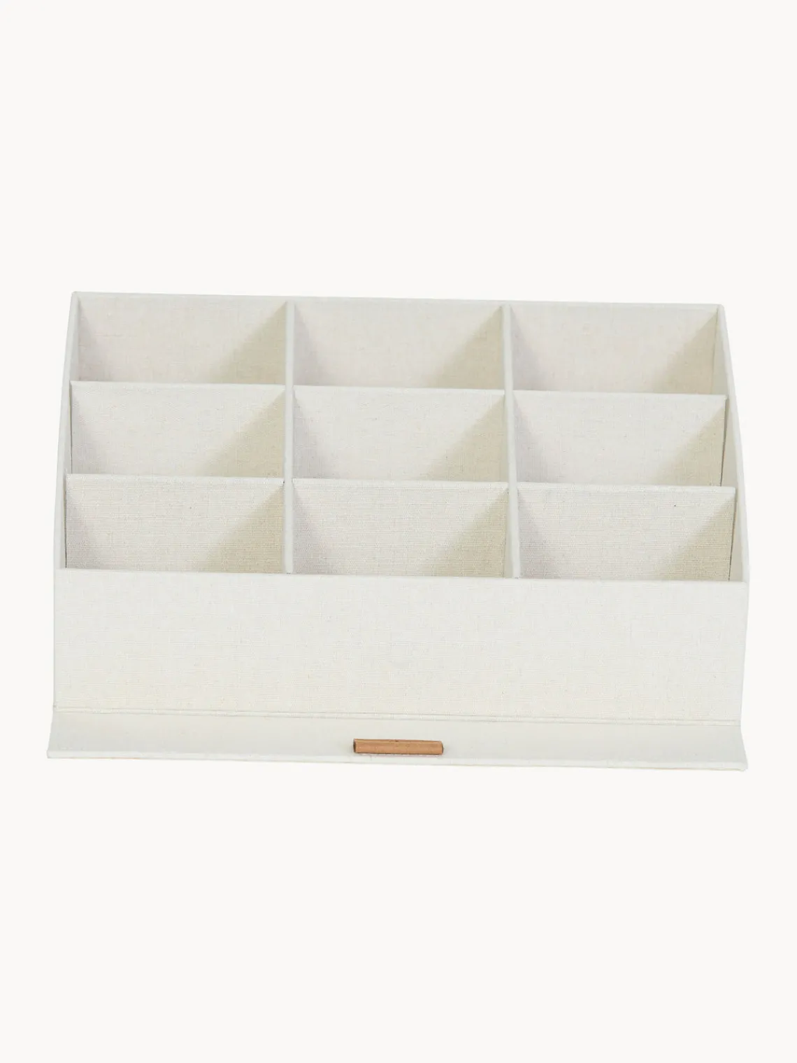La caja organizadora magnética de la serie PREMIUM ofrece una solución de almacenamiento de alta calidad y es versátil. Ya sea para accesorios de costura o pequeños objetos en la zona de estar, o cinturones y corbatas en el armario, esta práctica caja organizadora con nueve compartimentos es el lugar ideal para mantener todo en orden. La caja se abre y cierra fácilmente gracias a un imán cosido en la parte delantera. El tejido de la tapa está hecho de un material de lino especialmente duradero. Este material fue desarrollado específicamente para esta serie y impresiona con su diseño minimalista, su discreta combinación de colores y su tacto agradable. El logotipo de la marca está hecho de fina piel sintética. Gracias a su acabado de alta calidad, los productos son especialmente duraderos.