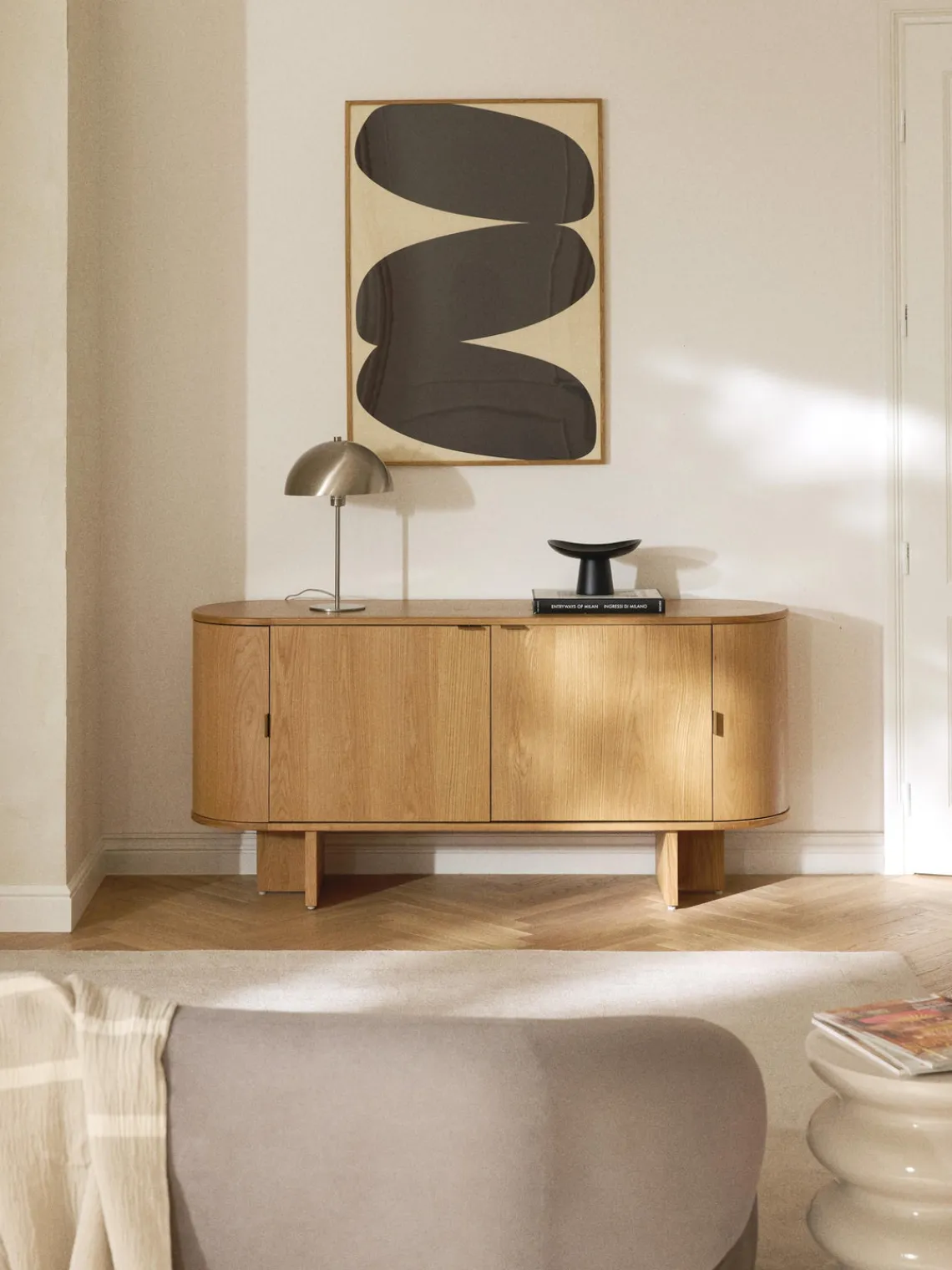 Este aparador tiene ocho compartimentos.