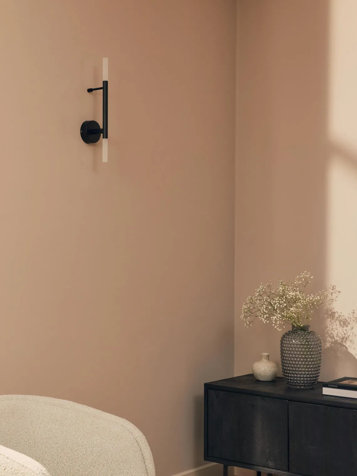 La lámpara se entrega sin cable ni interruptor, debe conectarse mediante un cable oculto empotrado en la pared. No se incluye sistema de fijación como tornillos, clavos o tacos.