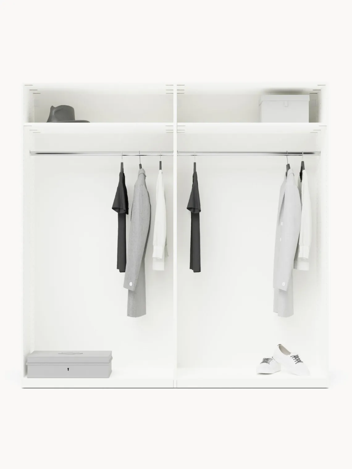 – Armario modular que consta de 2 módulos con diseño interior Basic que incluye 2 barras para colgar ropa y 2 estantes