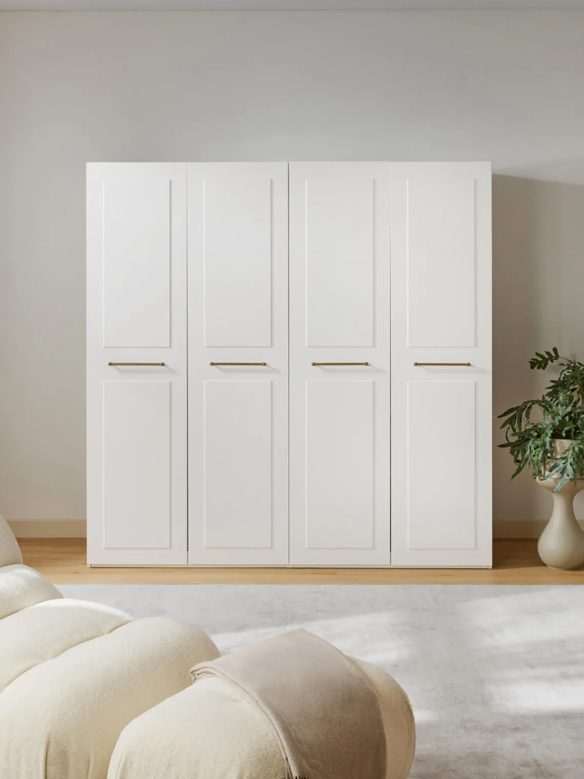 El montaje del armario se facilita gracias a los elementos premontados. Esto se hace en la posición vertical en el lugar donde quieras colocarlo.