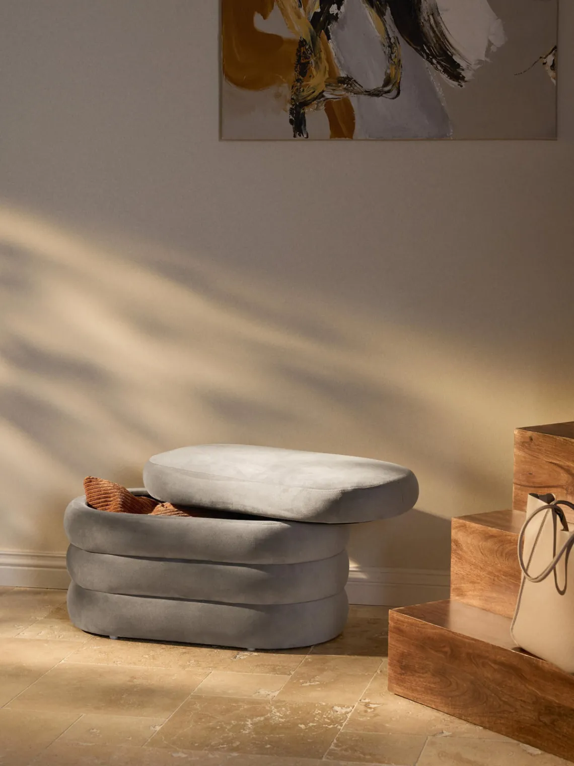 Westwing Collection Banco pequeño tapizado en terciopelo con espacio de almacenamiento Alto