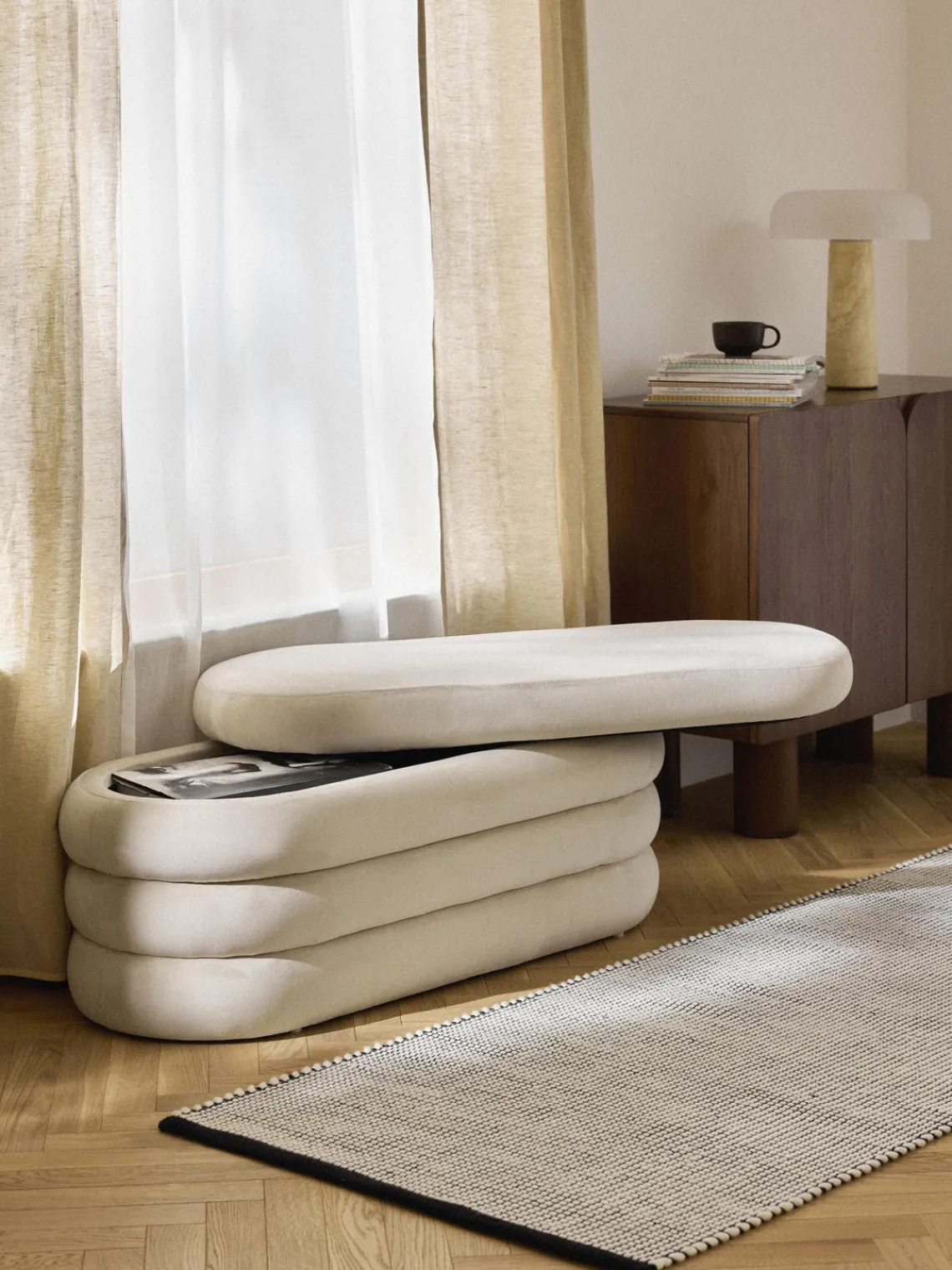 Westwing Collection Banco tapizado en terciopelo con espacio de almacenaje Alto