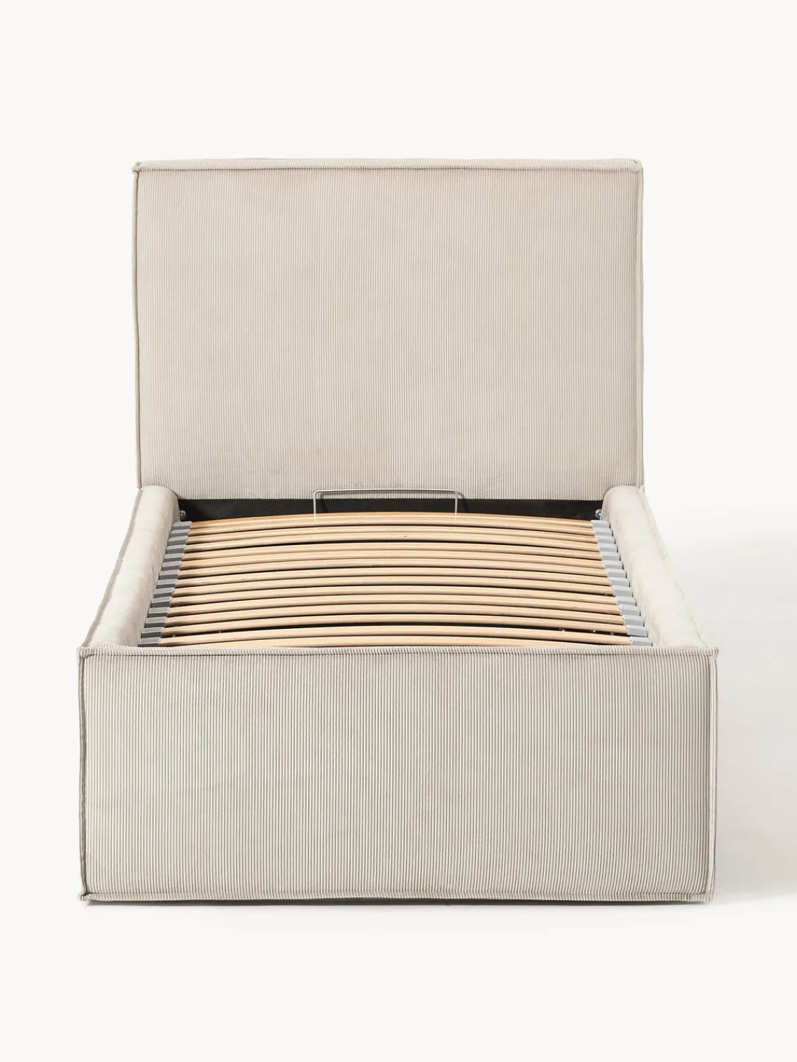 Cama tapizada con espacio de almacenamiento.