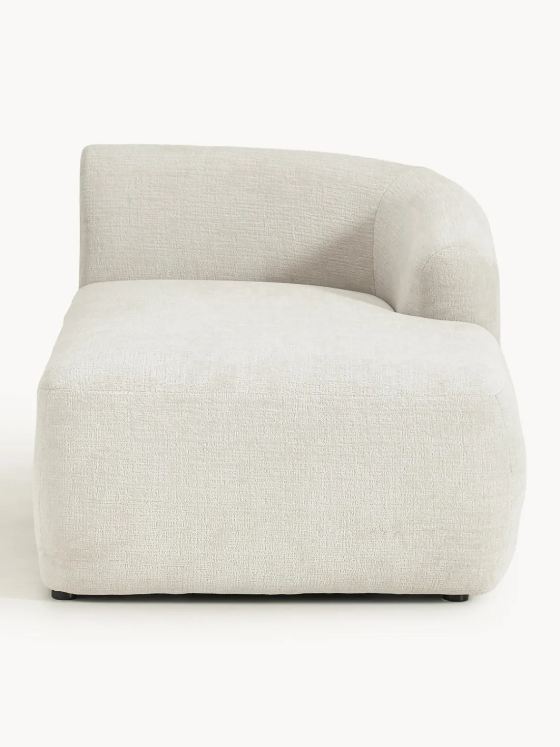La chaise longue está en el lado derecho cuando estás frente al sofá.