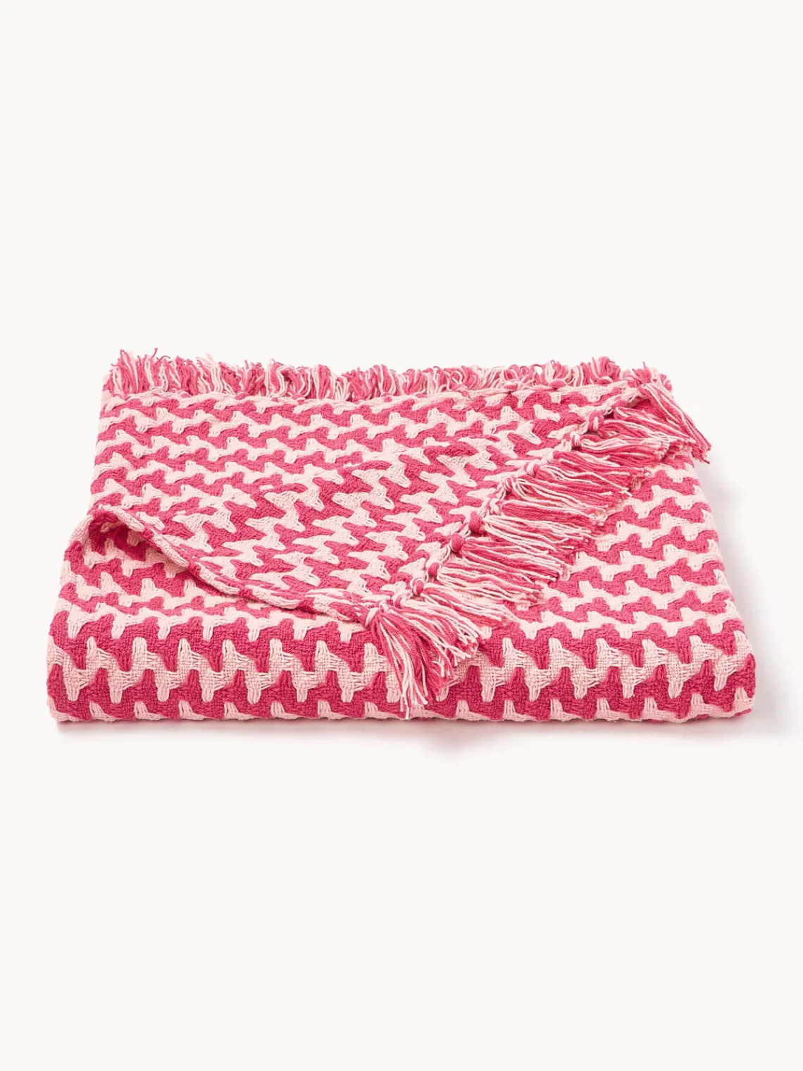 Westwing Collection Manta artesanal de algodón con flecos y estampado zigzag Lioba