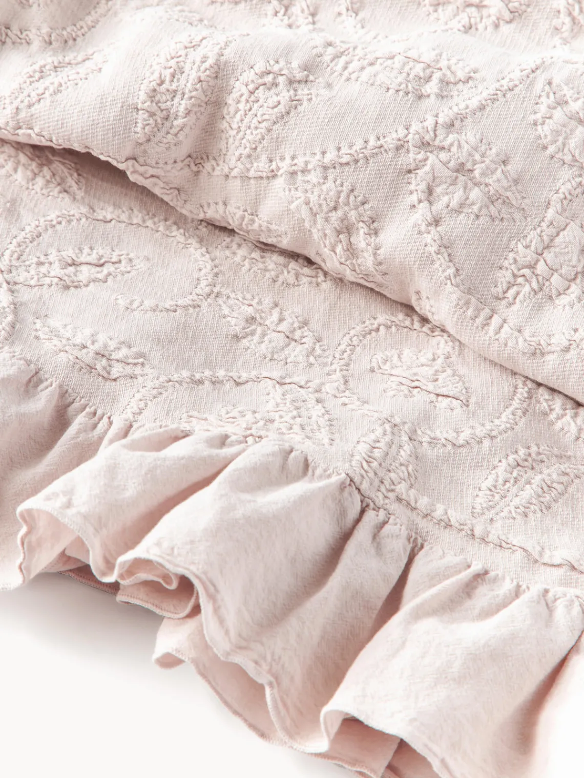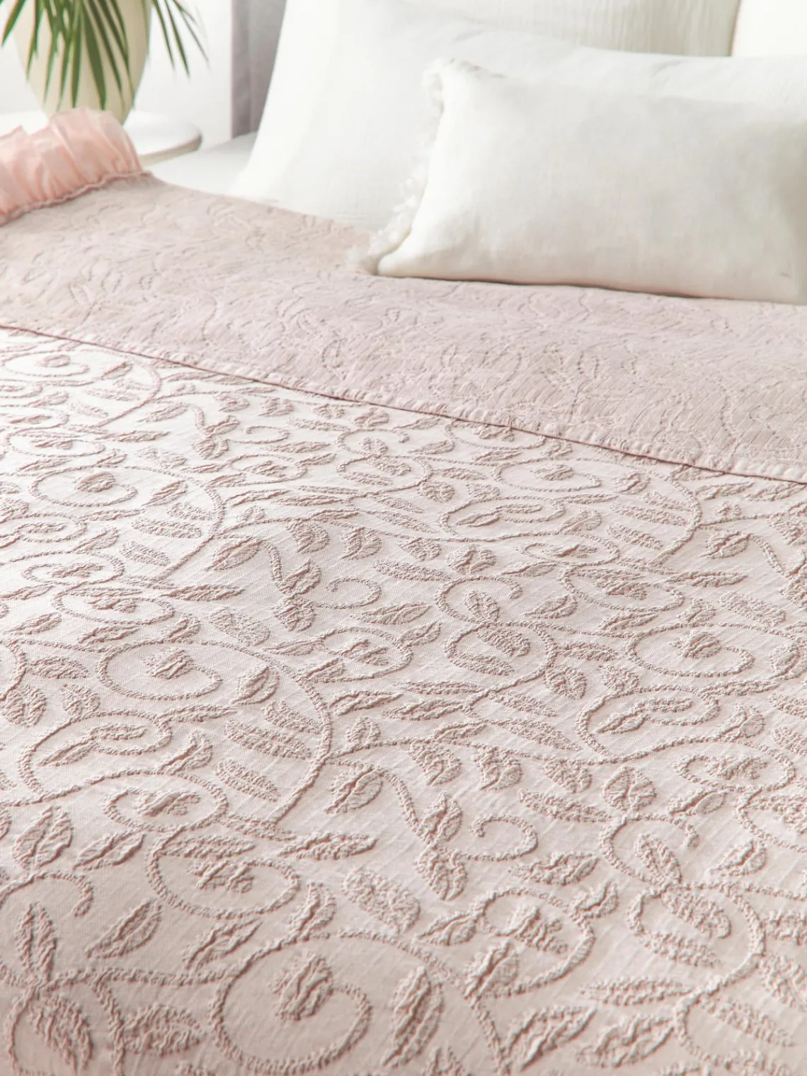 Las colchas nunca deben comprarse demasiado pequeñas. Deben ser al menos iguales a la longitud y el ancho de la cama más unos 20 cm pora cada lado. Como resultado, cubren toda la cama y alcanzan el borde del colchón.