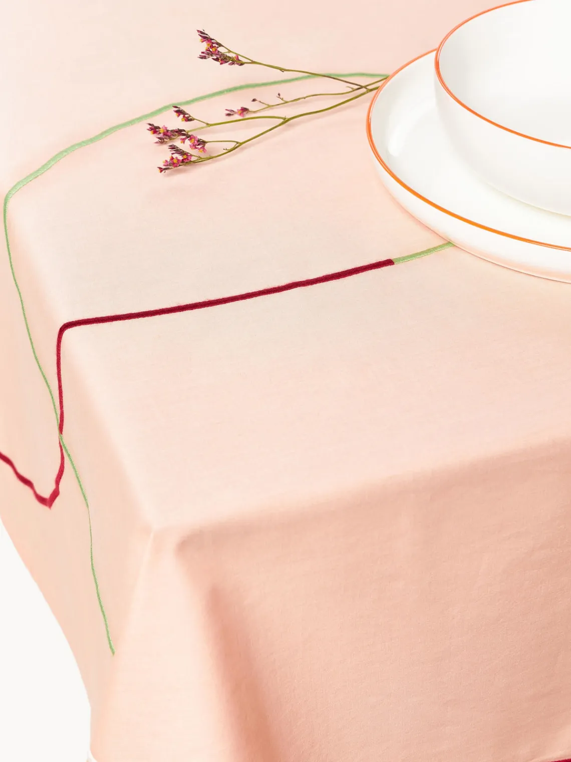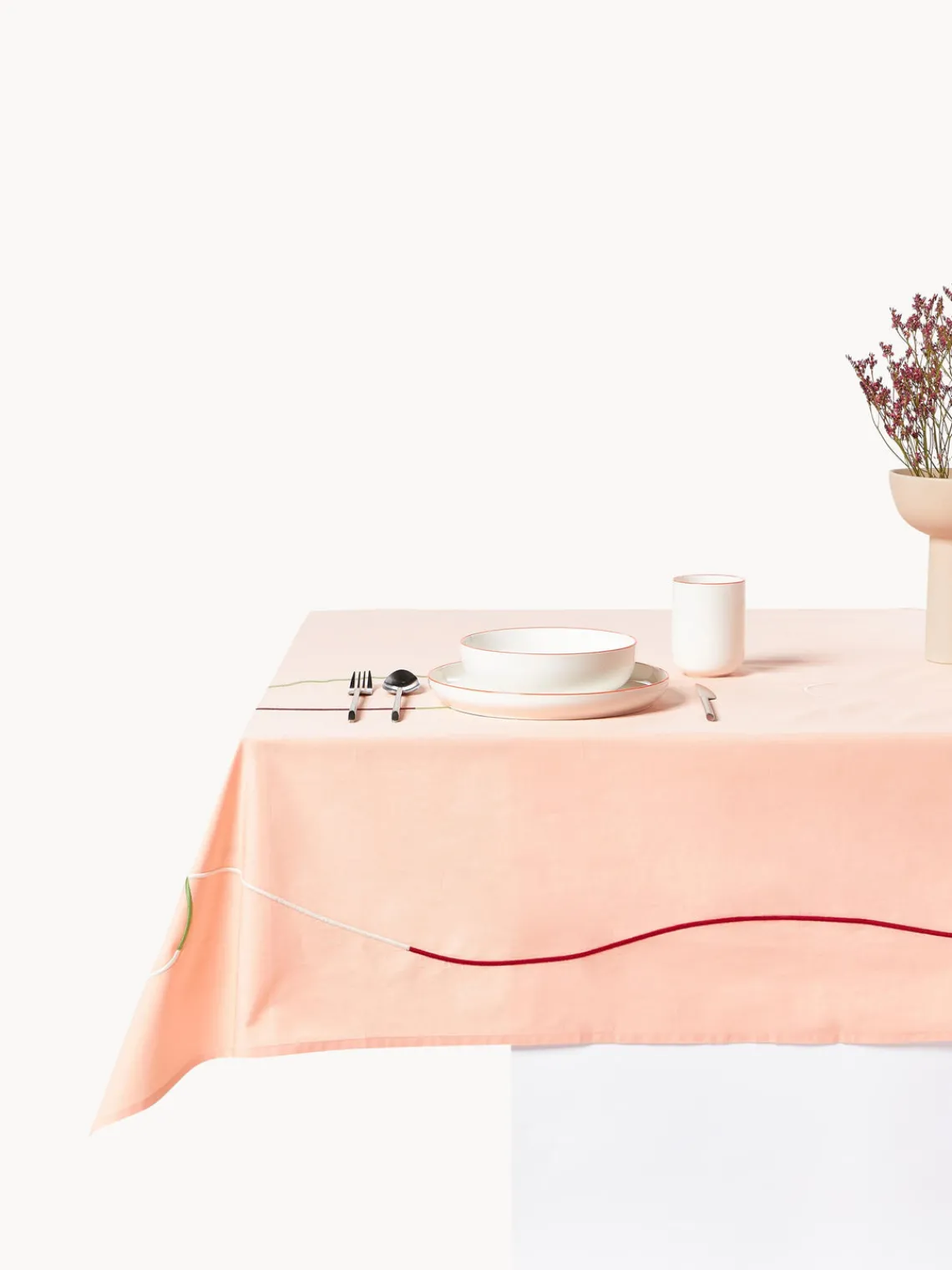 Con SUE traemos un soplo de aire fresco a tu mesa. Las líneas onduladas abstractas y bordadas sobre la tela de algodón lavada crean un aspecto divertido. Ya sea en interiores o exteriores, este mantel queda bien en cualquier lugar. Combínalos con platos coloridos y accesorios alegres para conseguir un estilo realmente cool.